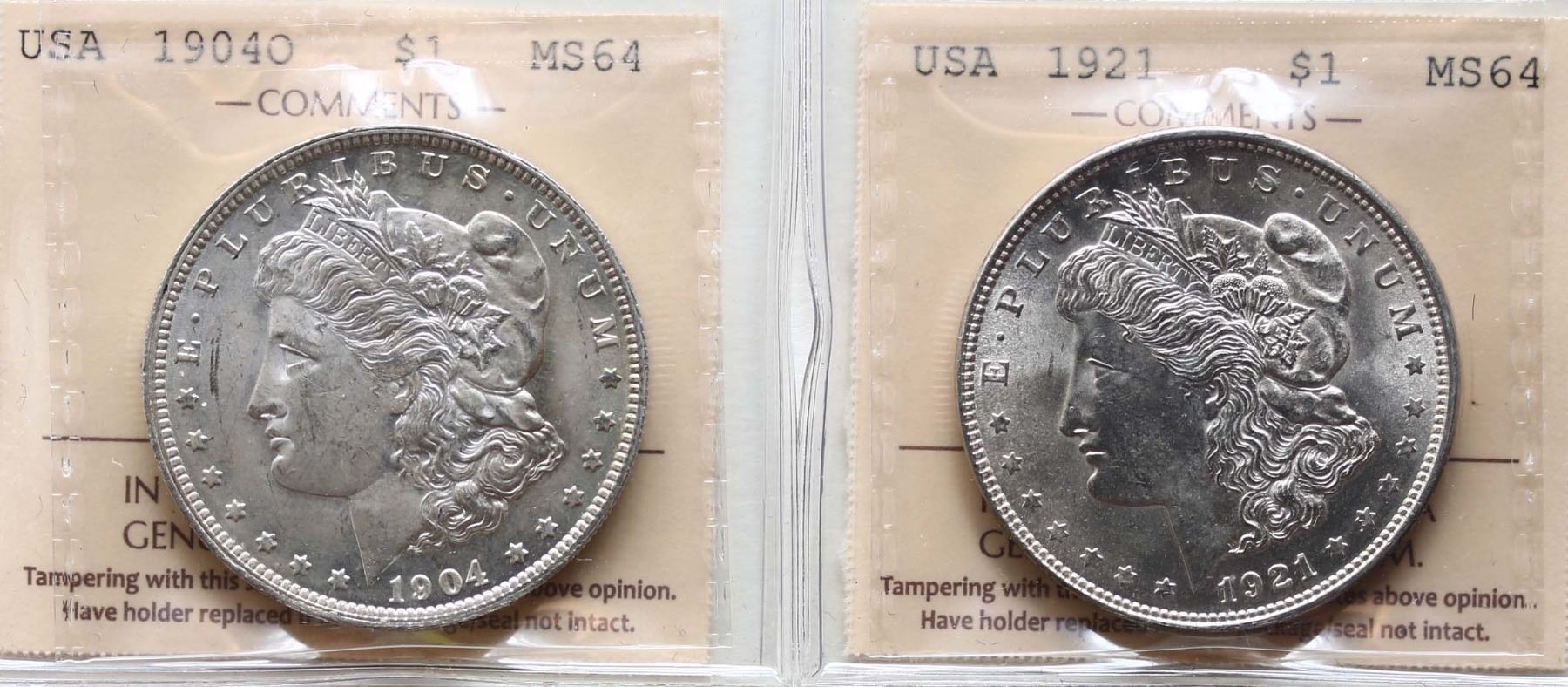 USA; 1904O $1,1921 Both coins ICCS graded MS64