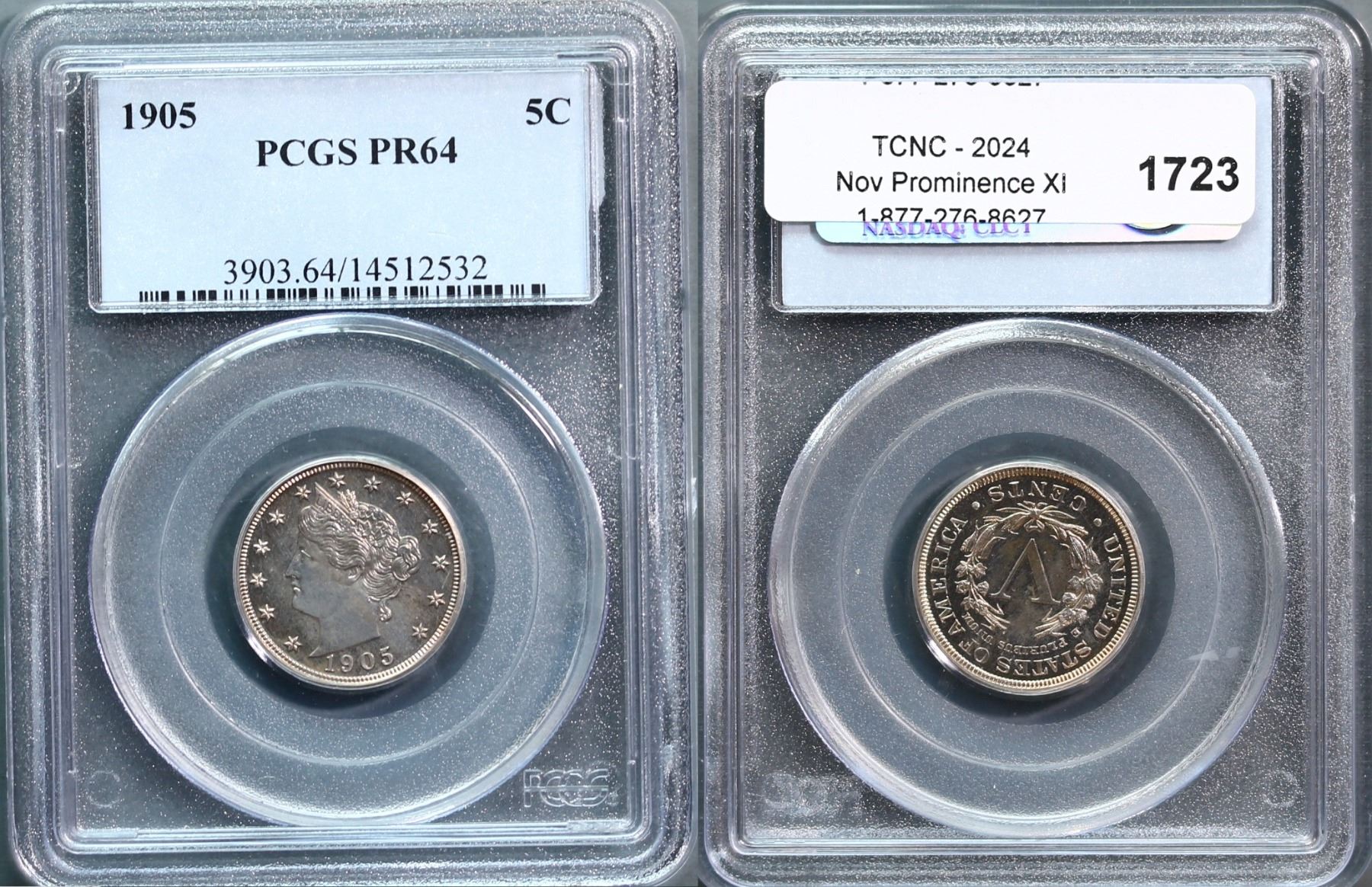 USA; 1905 5¢ PCGS Choice PROOF-64