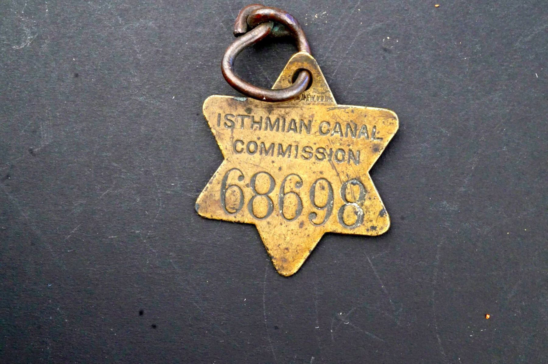 The Isthmian Canal Commission, or ICC, was created by the U.S. Congress in 1899 to oversee construction of a canal across the Isthmus of Panama. The first identification tags issued to employees on the project were diamond shaped, with rounded points. Star-shaped tags were introduced around 1906-07, remaining in use only until 1909.