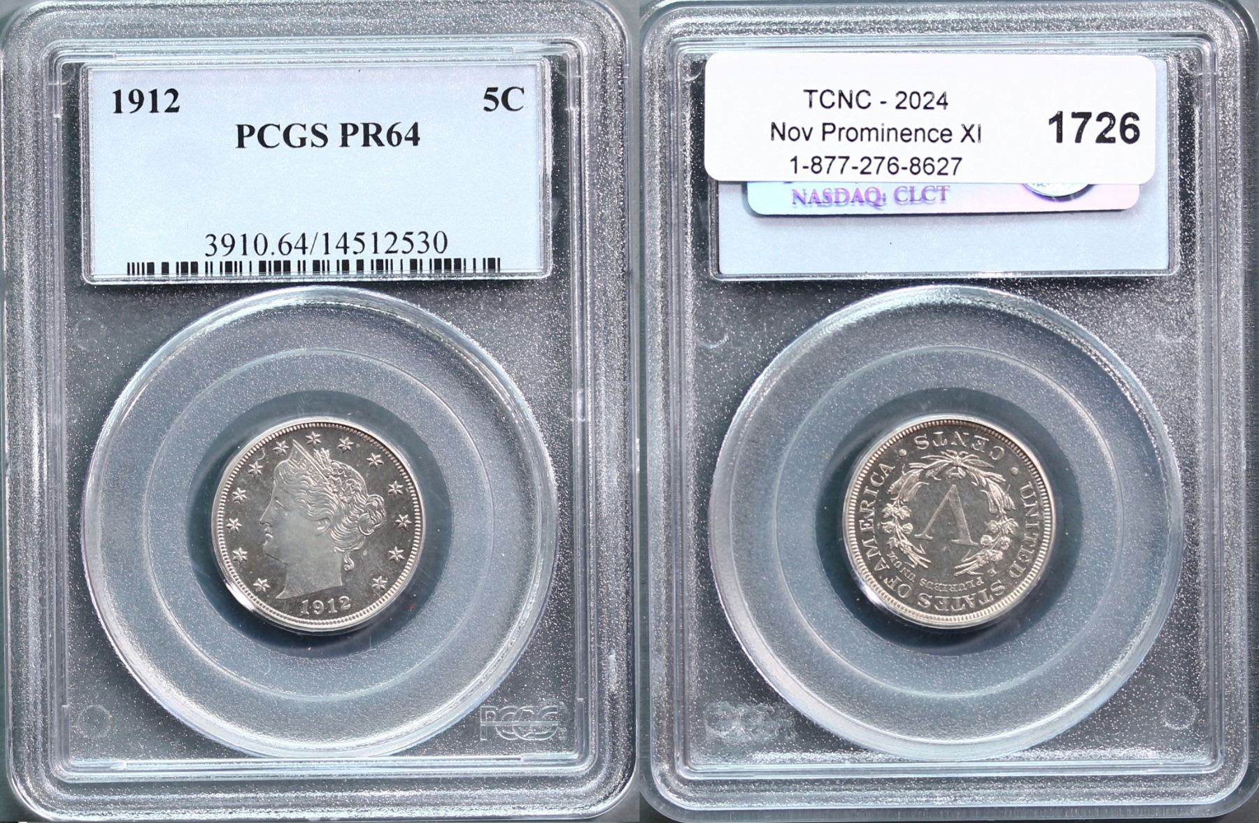 USA; 1912 5¢ PCGS Choice PROOF-64