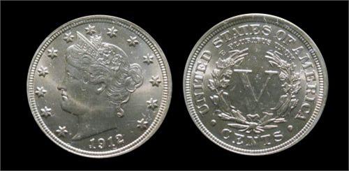 USA 1912 5¢, PCGS MS65. Another superb example with full luster and golden pink tone.