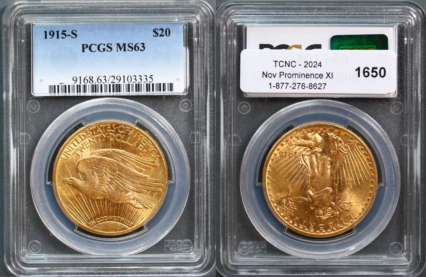 USA;  1915-S $20 Gold PCGS Choice Mint State-63