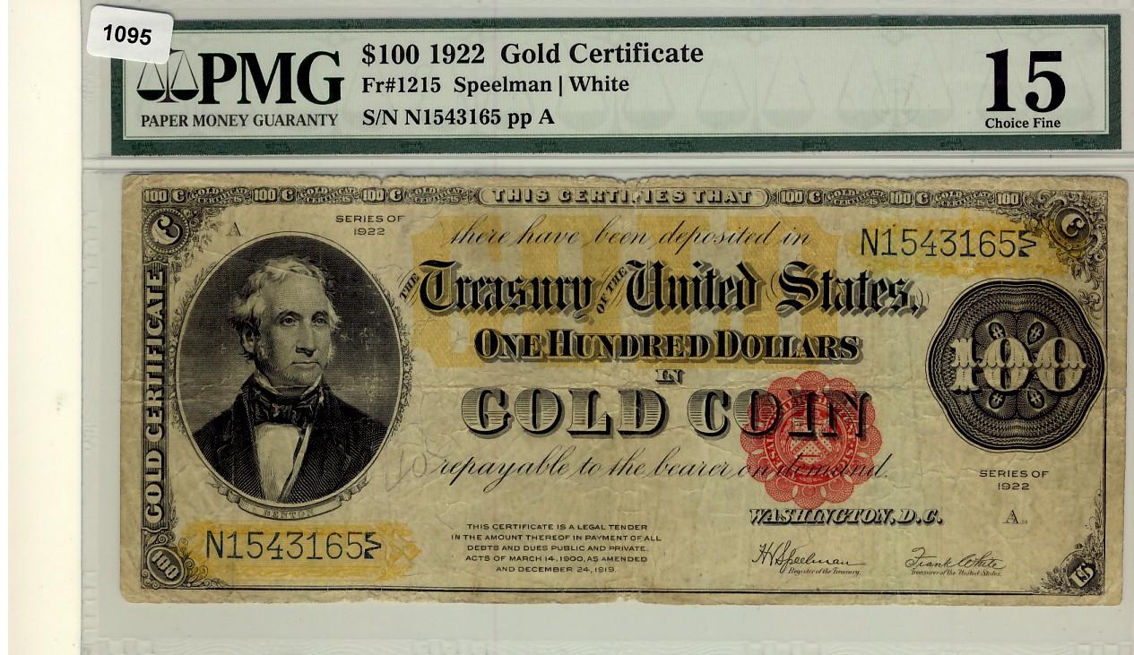 USA 1922 $100 Fr1215 N1543165 PMGF15