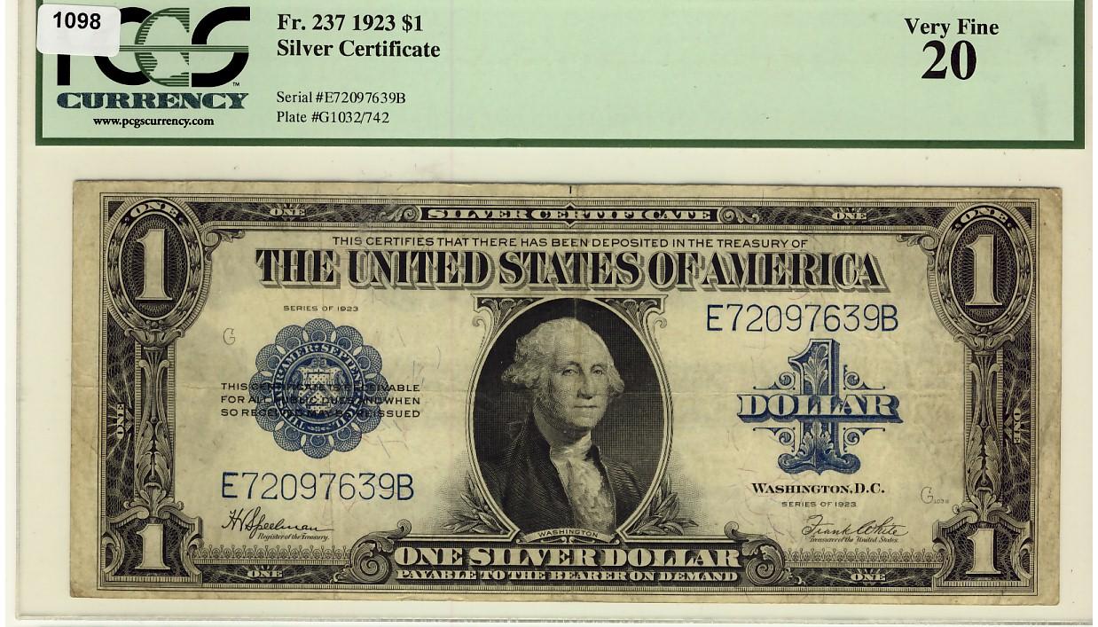USA 1923 $1 Fr,237 E7209763B PCGS VF20