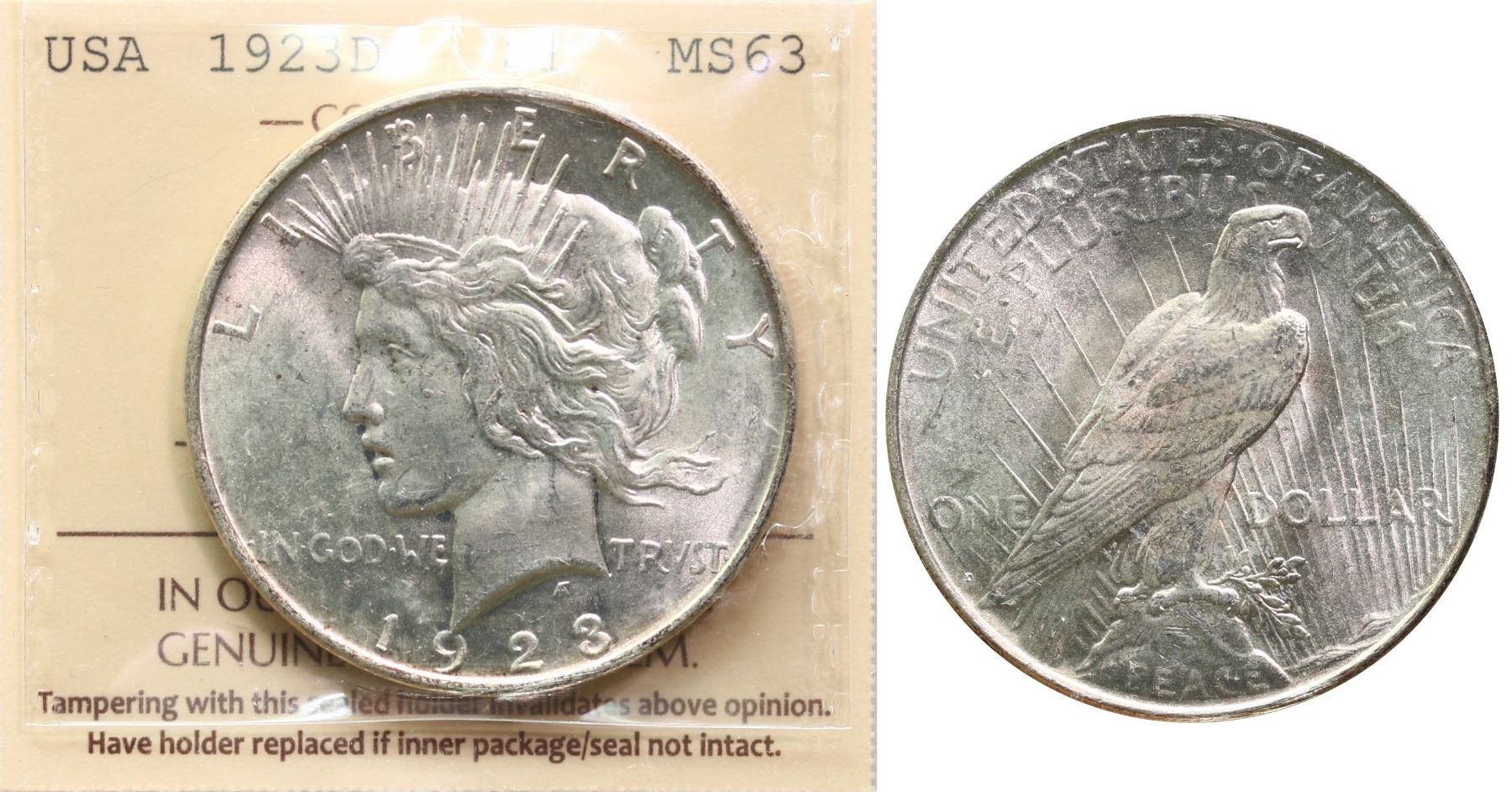 USA; 1923-D $1 "PEACE" ICCS MS63