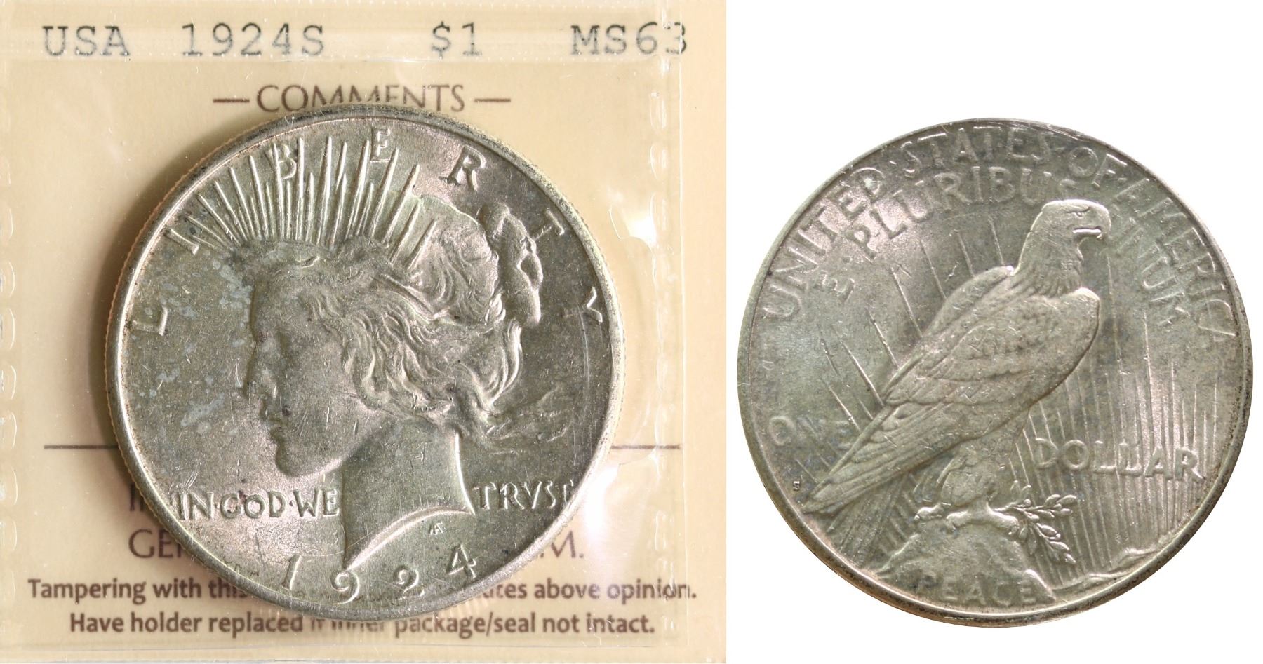 USA; 1924S $1 "PEACE" ICCS MS63