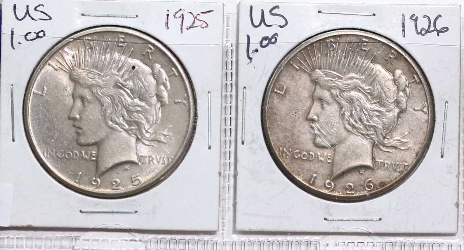 USA; 1925 $1, 1926 Lot of 2 coins EF or better.