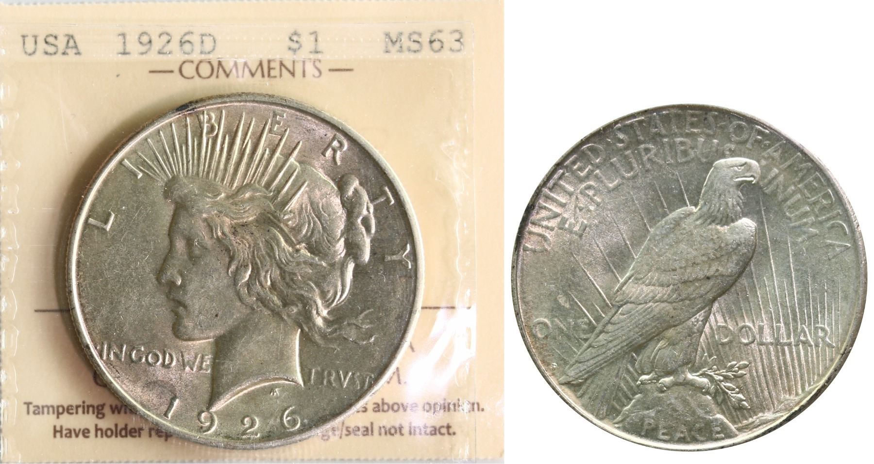 USA; 1926-D $1 "PEACE" ICCS MS63