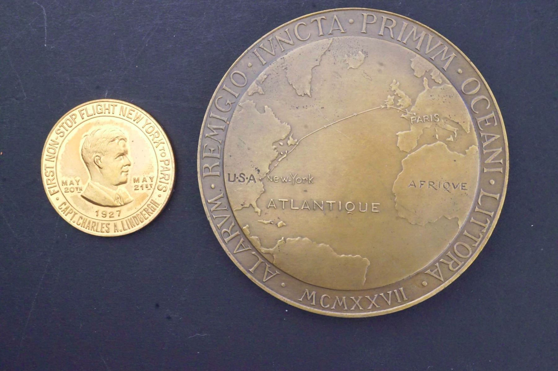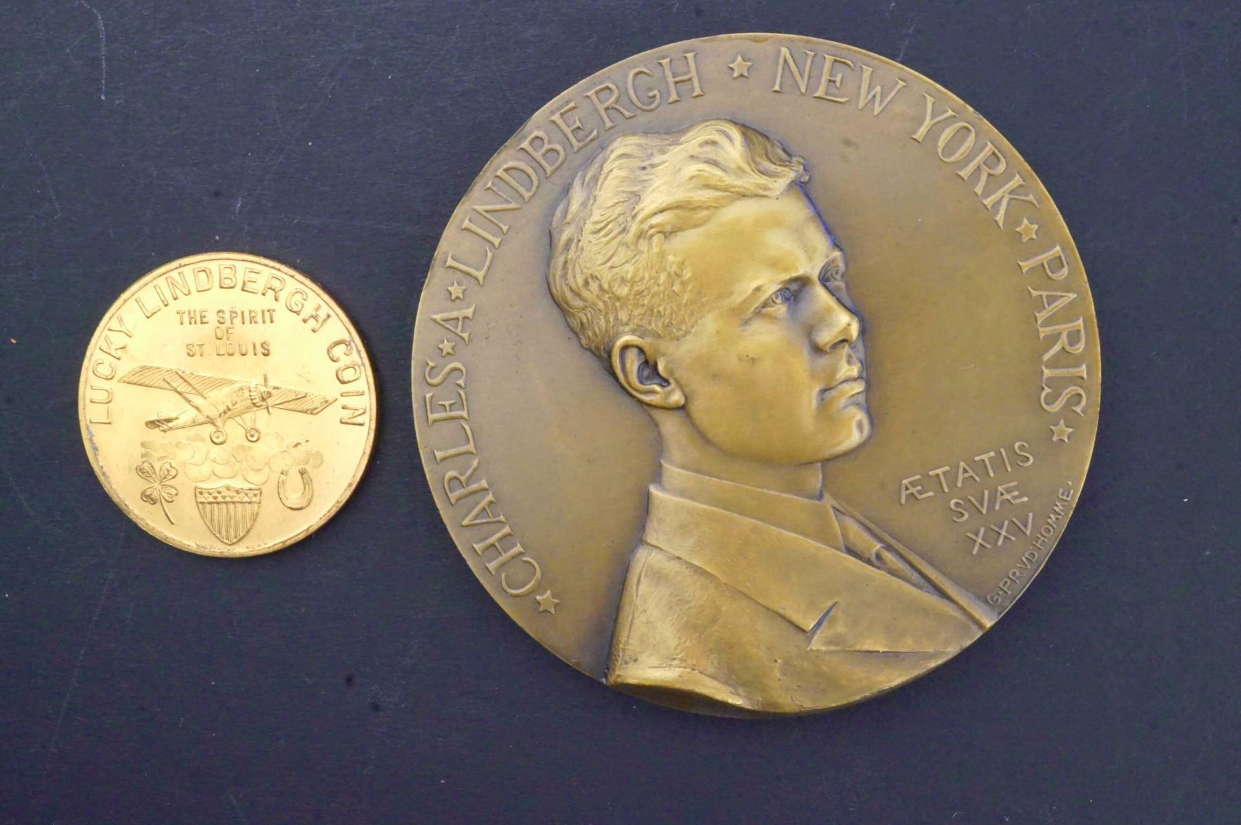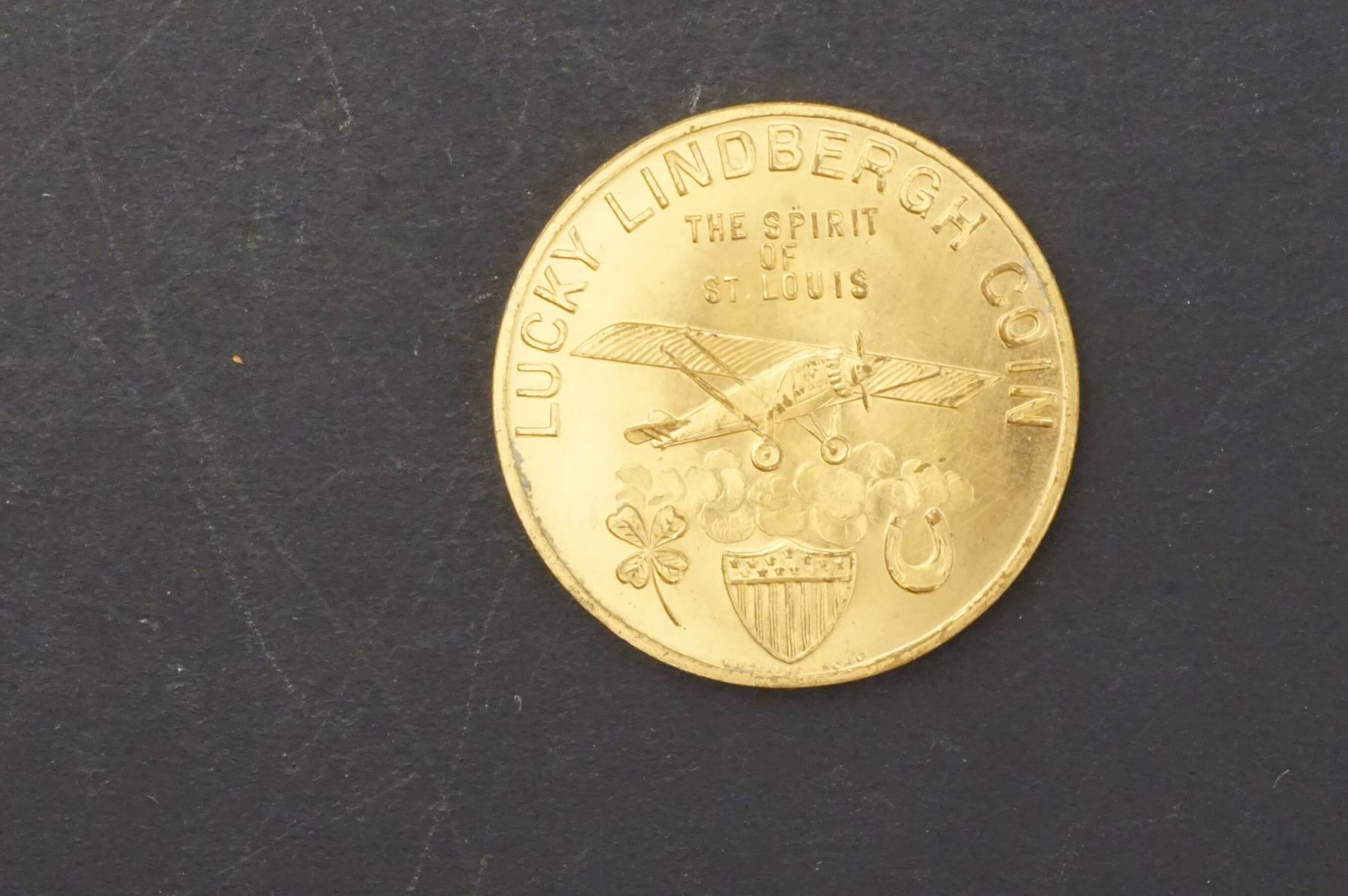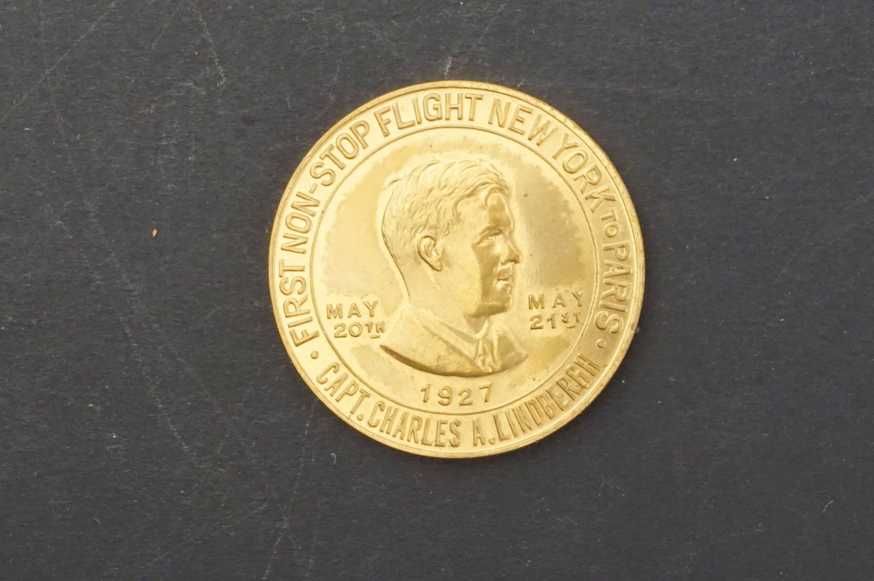 2 Pcs. Lindbergh Commemorative Flight FDC AE-82 135.8 grs. Edge: Whitehead and Hoag & Souvenir Gilt token, AE-31.5, 10.1 grs.