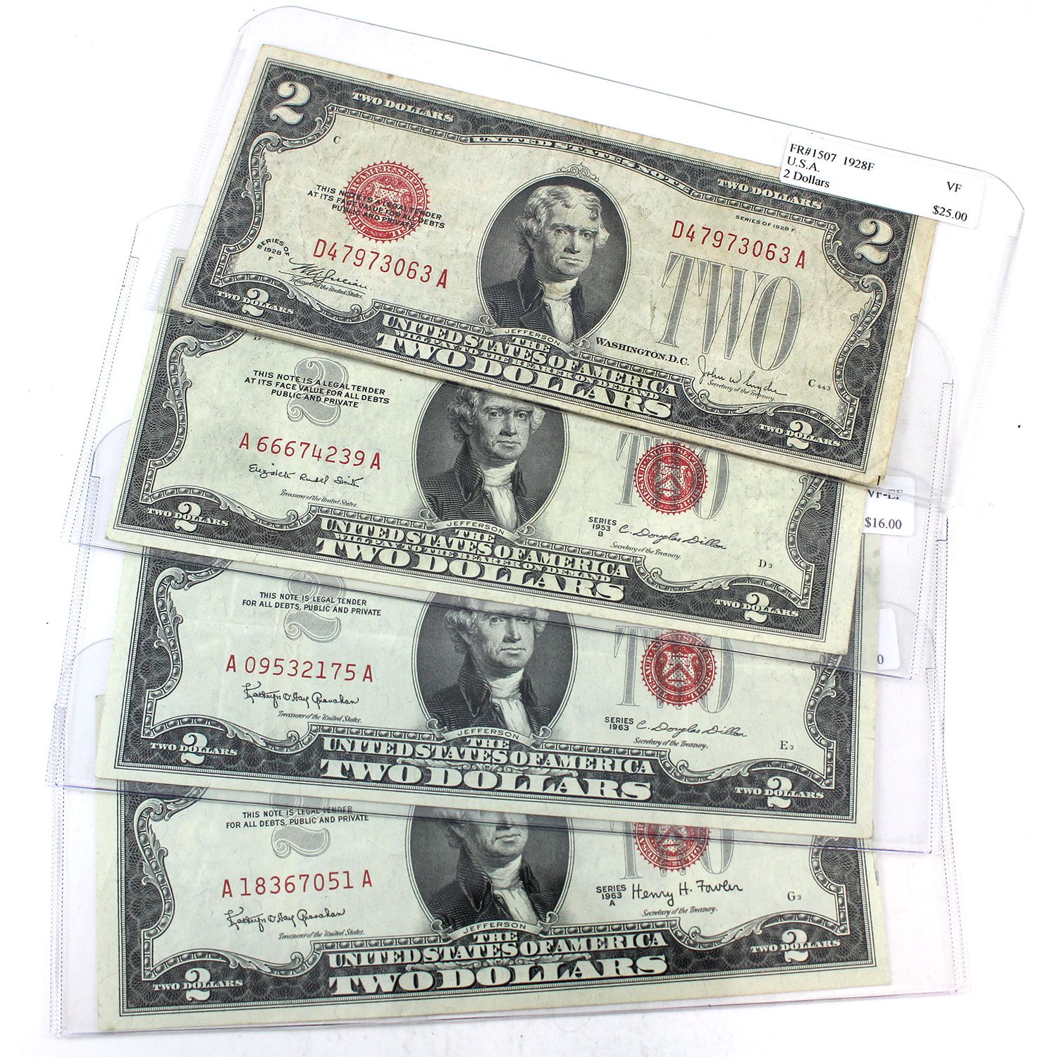 INCLUDES: 1928F FR-1507 VF SN: D47973063A, 1953B FR-1511 EF SN: A66674239A, 1963 FR-1513 VF-EF SN: A09532175A & 1963A FR-1514 EF SN: A18367051A. 4pcs.