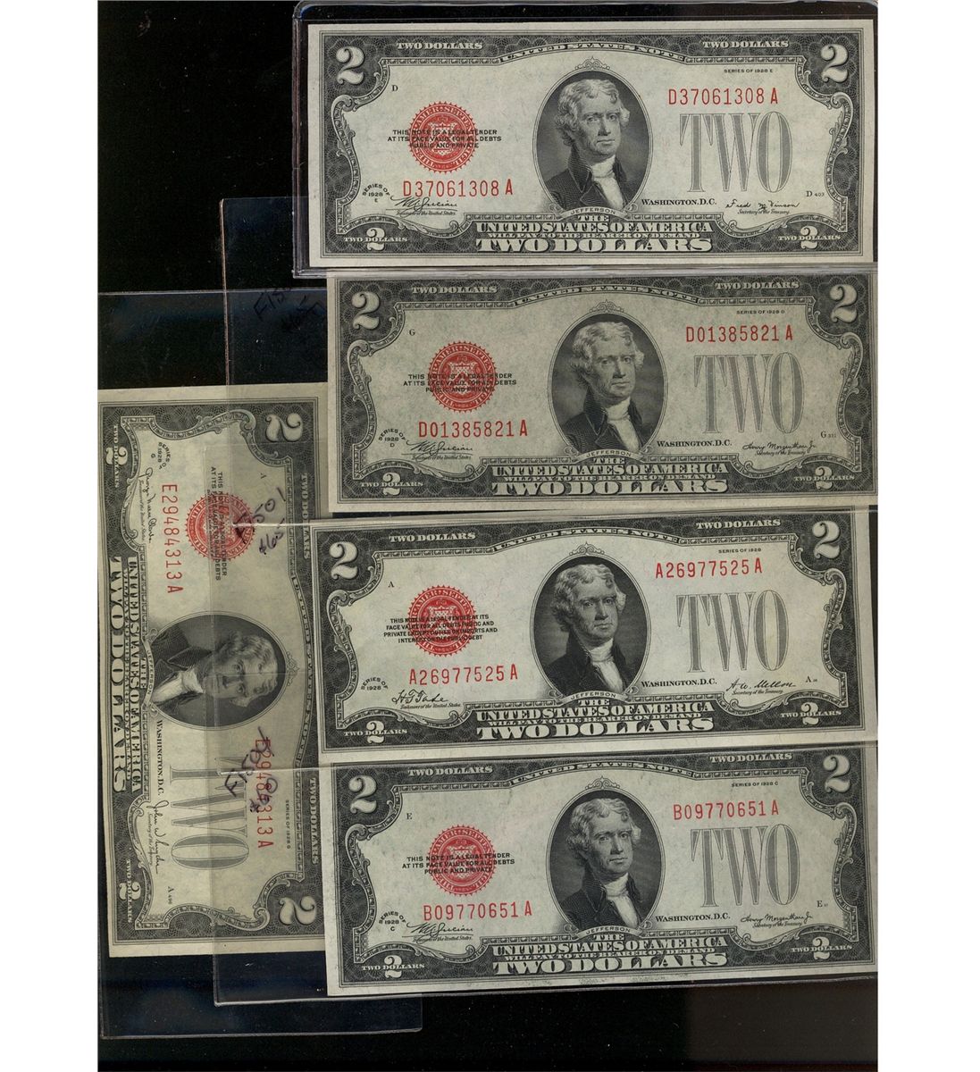 USA 1928 $2 F-1501, F1504, F,1505, F1506 & F 1508. Includes 5 notes all AU to UNC.