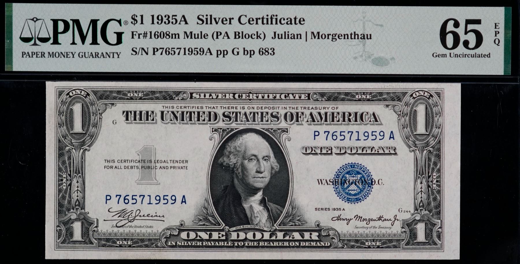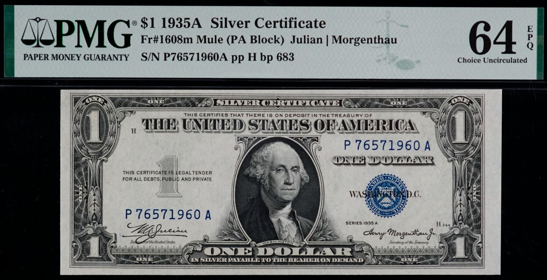 USA; 1935 $1 Fr#1608m #P76571959-960, PMG CH UNC64 & Gem UNC65 both PPQ. Lot of 2 notes.