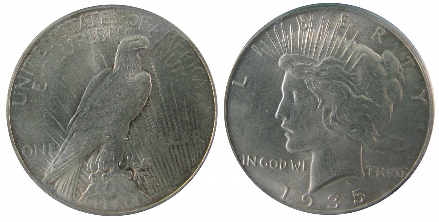USA 1935 $1 PCGS MS65, fully lustrous with a hint of golden tone.