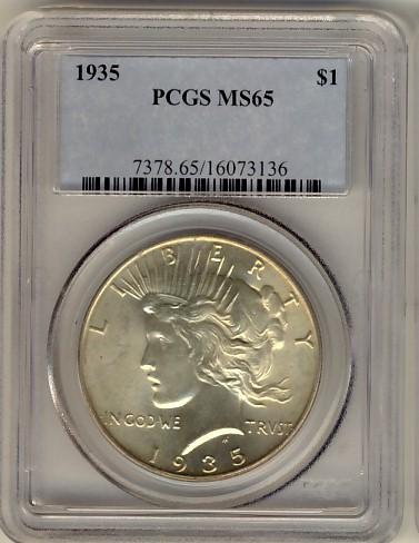 USA 1935 $1 PCGS MS65, fully lustrous with a hint of golden tone.