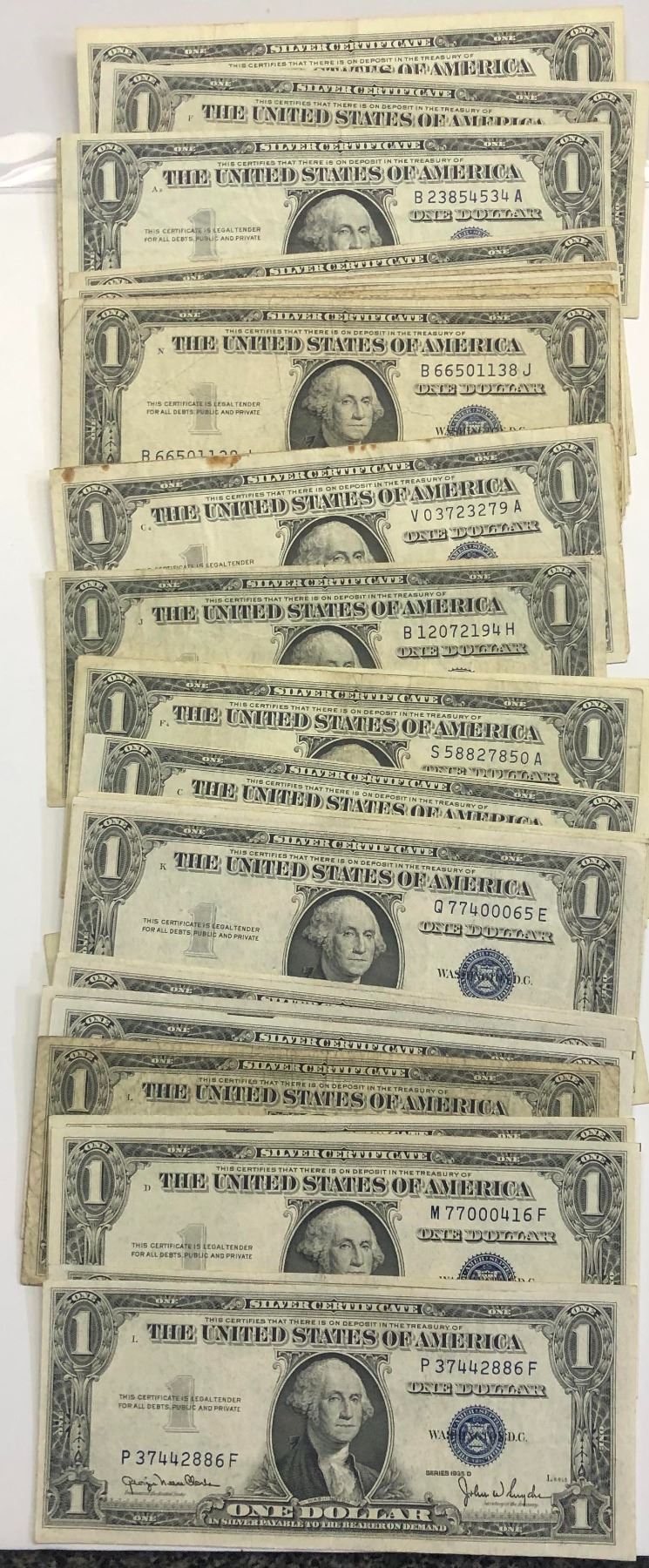 USA; 1935 $1's "Silver Certificate" Lot of 58 notes. VG to Uncirculated.