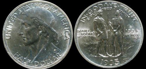 USA 1935/34 50¢, Boone, Fully lustrous with clean fields. Nice BU example