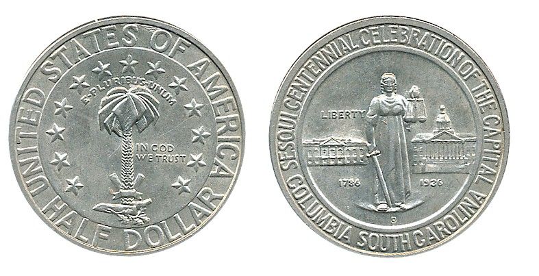 USA; 1936-D 50¢ Commerative Columbia issue. Lustrous MS.
