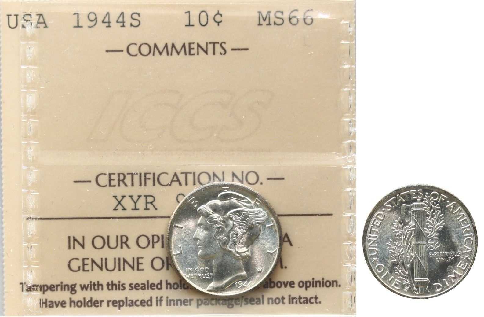 USA; 1944-S 10¢ ICCS MS66 Blast white example.