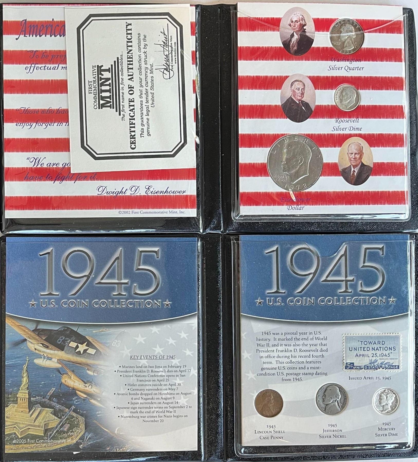 USA; 1945(2) Stamp & Coin Collection, 1972 3 coin Set Americas Freedom Fighter. Lot of 3 sets
