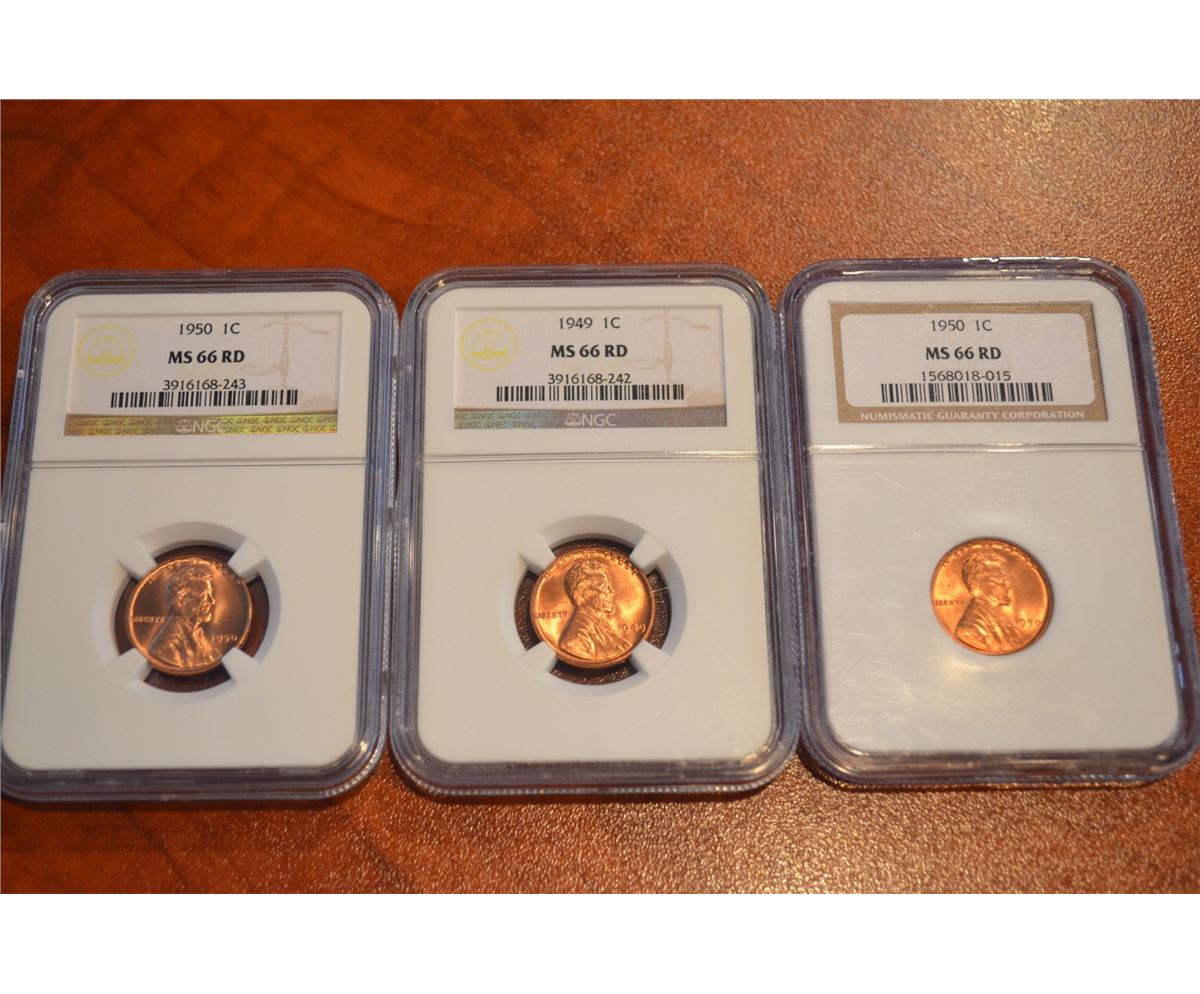 USA; 1949 1¢ & 1950(2) NGC MS66. Lot of 3 coins.
