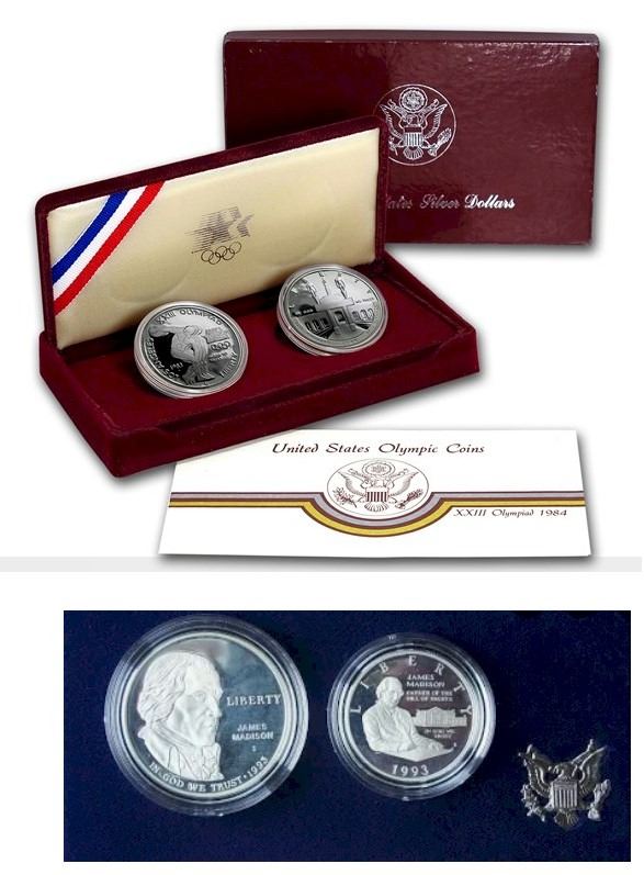 USA; 1983 $1 Proof 2-Coin Set & 1993 Bill of Rights Proof 2 Coin Sets. Lot of 2 Sets.