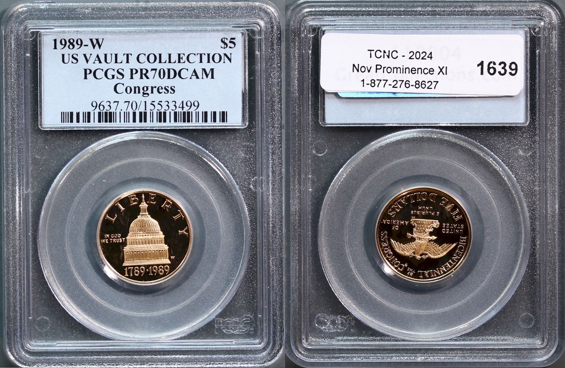 USA; 1989-W $5 Gold US Vault Collection Congress PCGS Perfect PROOF-70DCAM