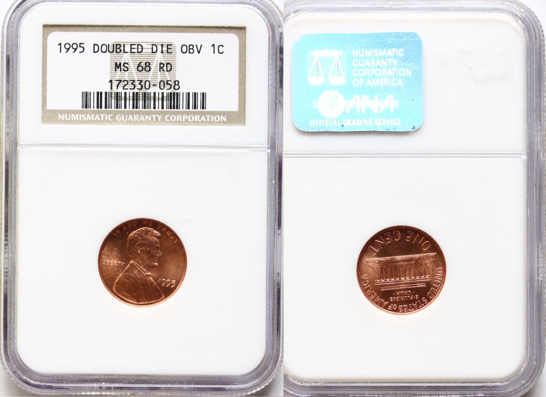 USA; 1995 1¢ Doubled Die Obv NGC MS68 Rd