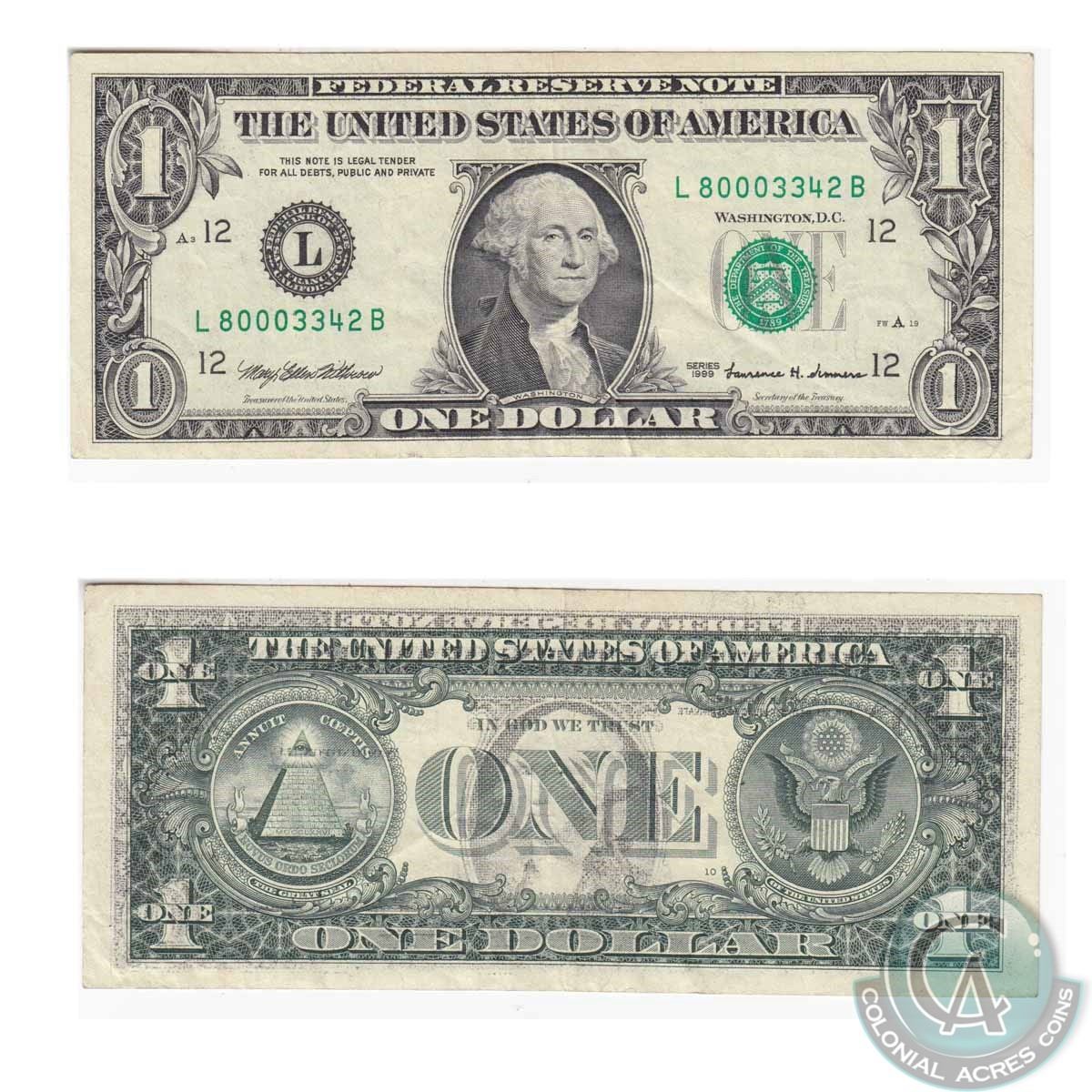 USA; 1999 $1 Banknote ERROR 100% Front on Back Offset