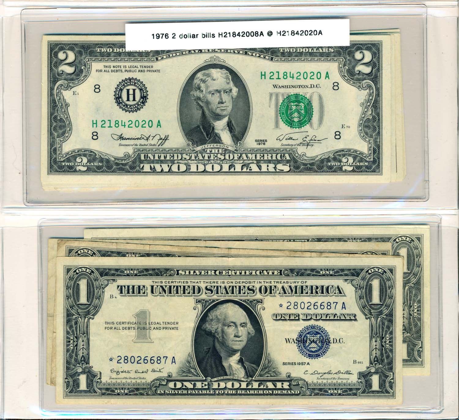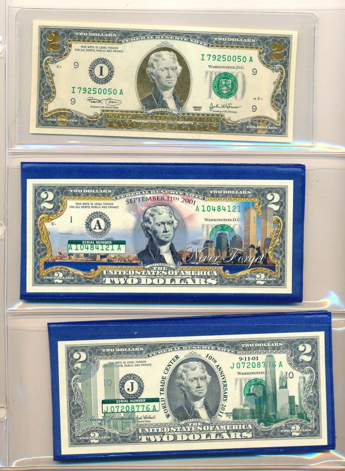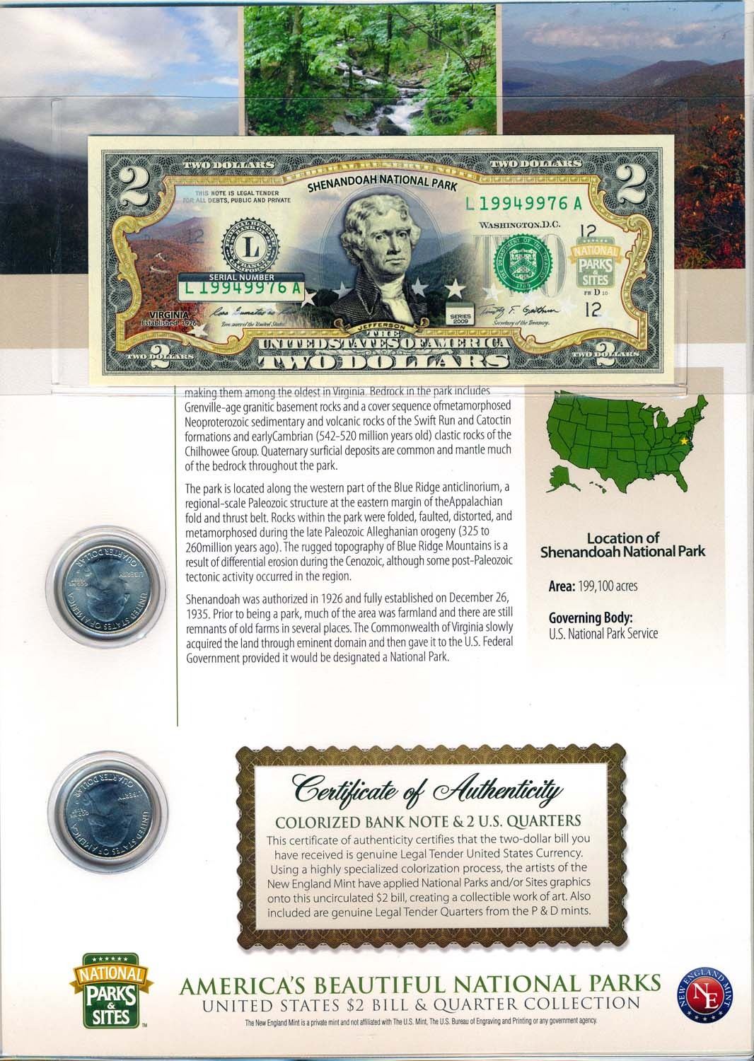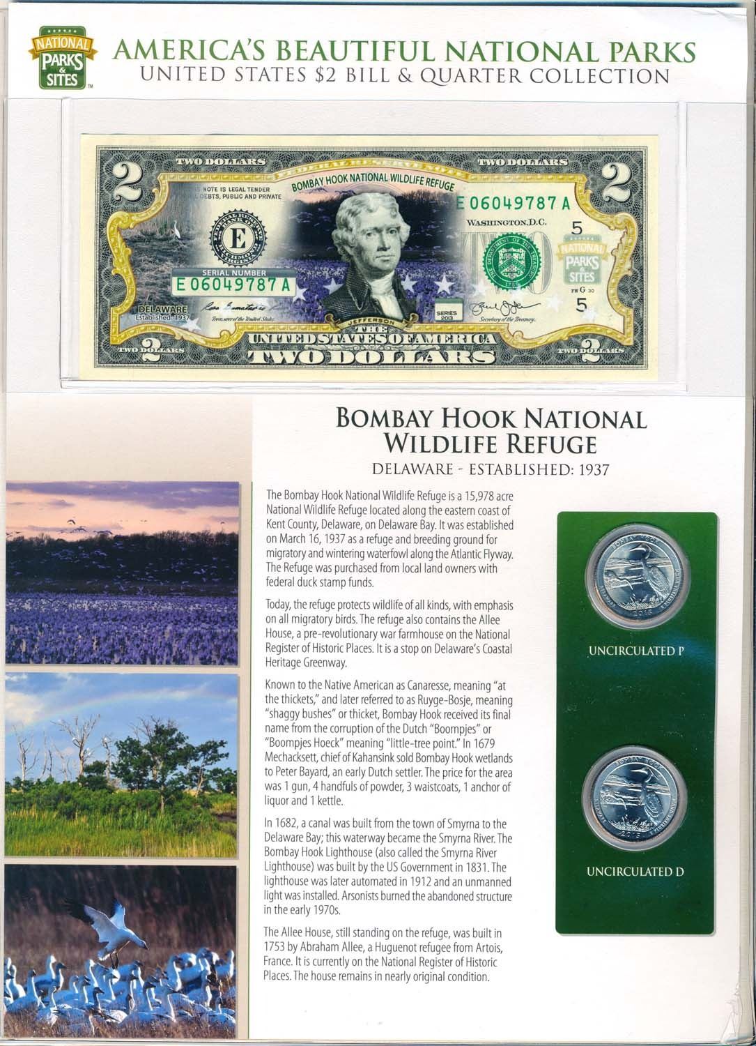 A massive 2 binder 75+ pages of Coloured $2.00 Bank notes and matching State Quarters. Each State comes with a seanic picture of a State Park, a colourized $2.00 Bank note and a "P" & "D" Uncirculated .25cents. Not sold in Canada, this huge endevour are relatively rare here. Would seriously view this set. Face Value $146.00CDN.