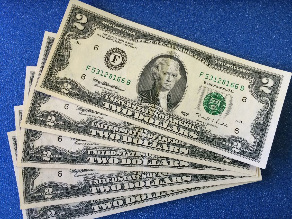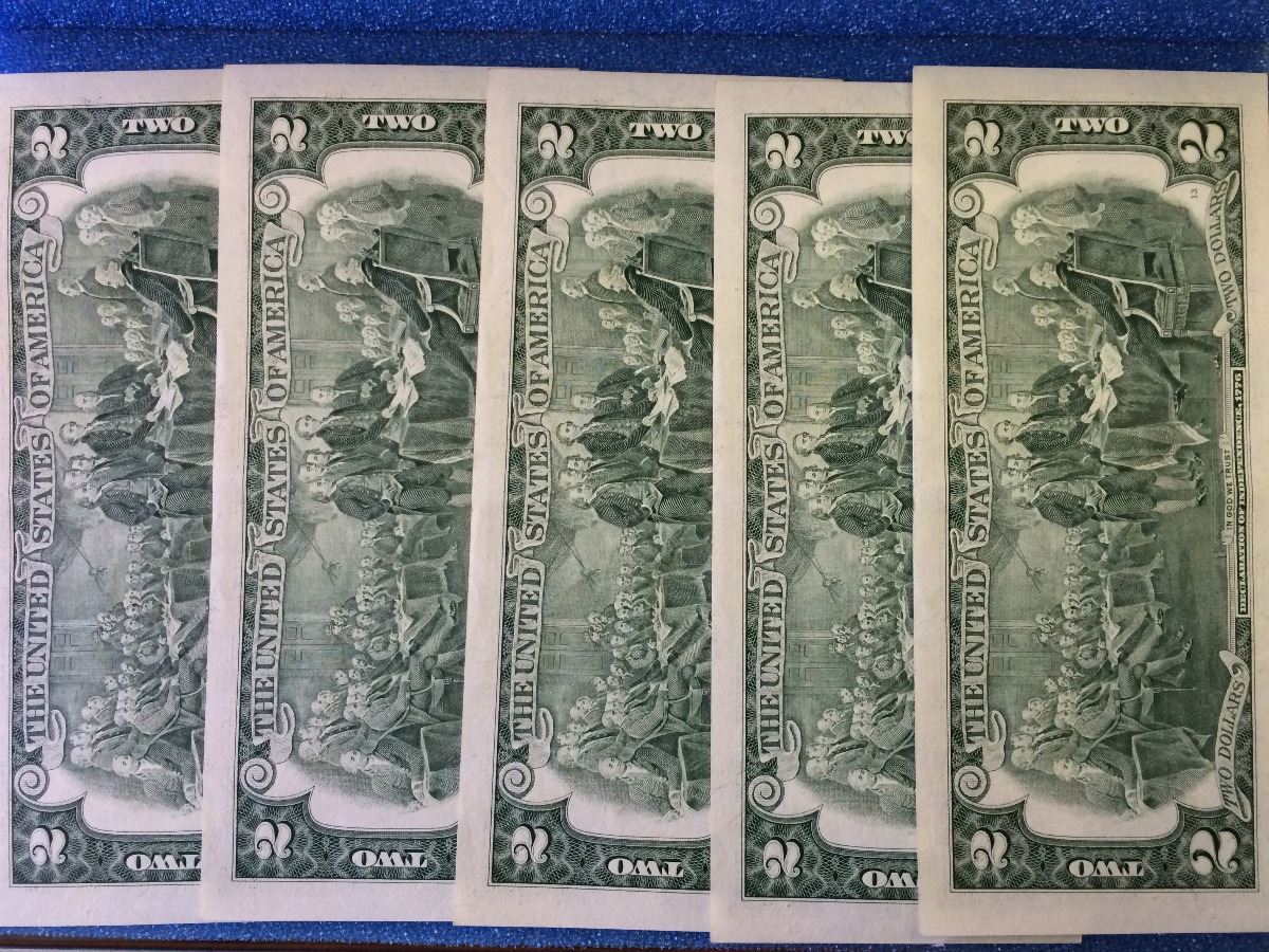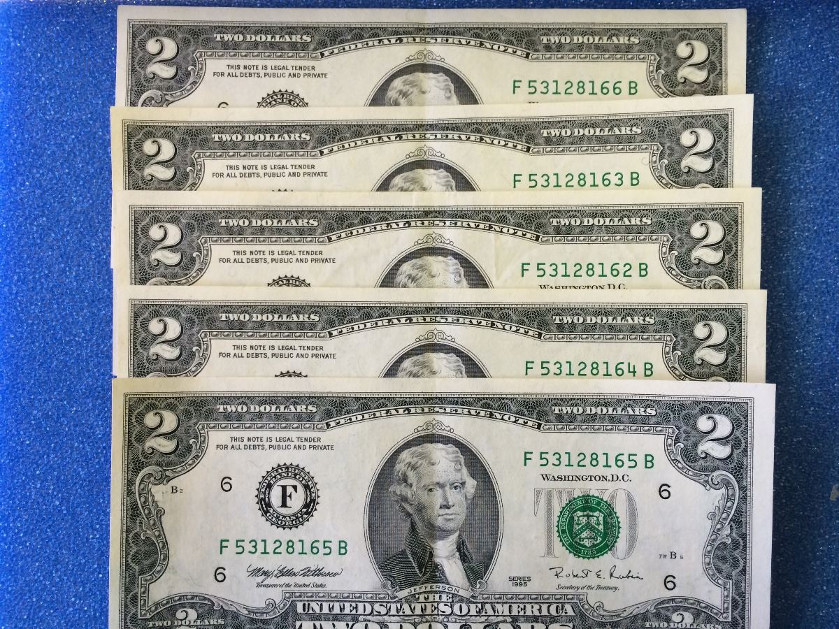 USA; $2.00 note 1995, 5 consecutives note, F53128162B to F53128166B all UNC.