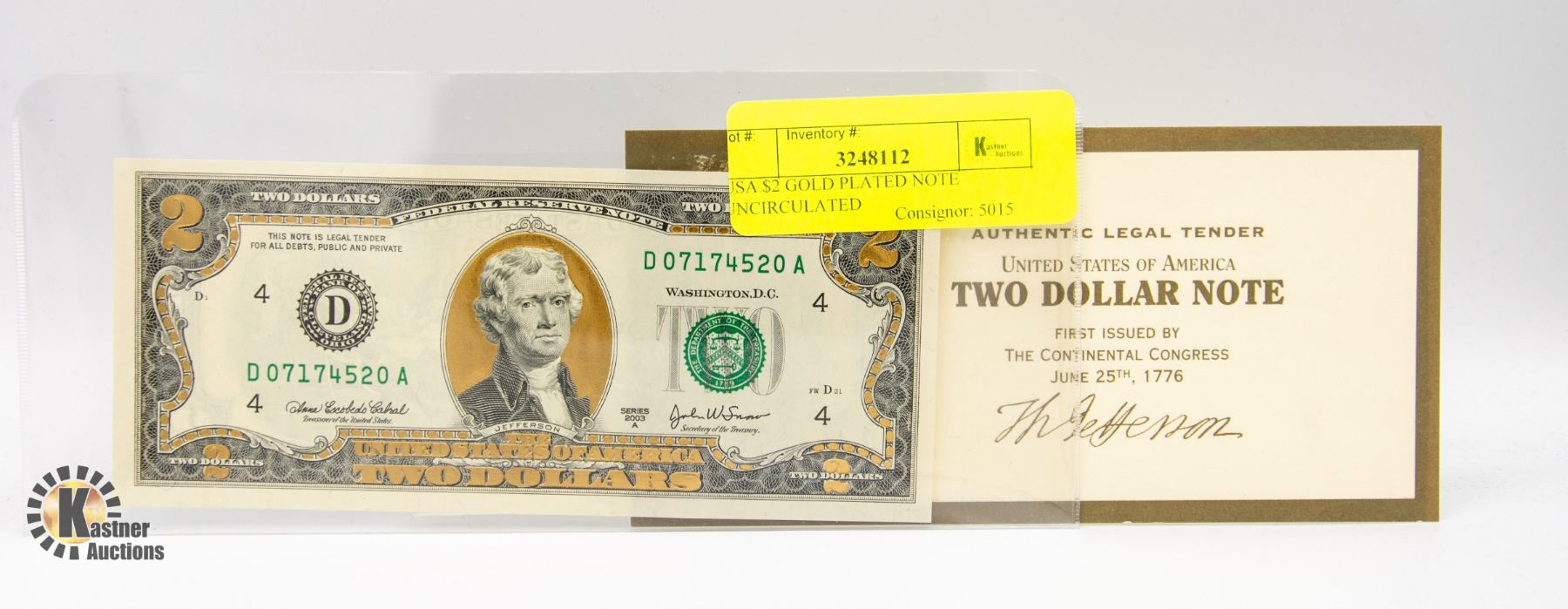 USA $2 GOLD PLATED NOTE UNCIRCULATED