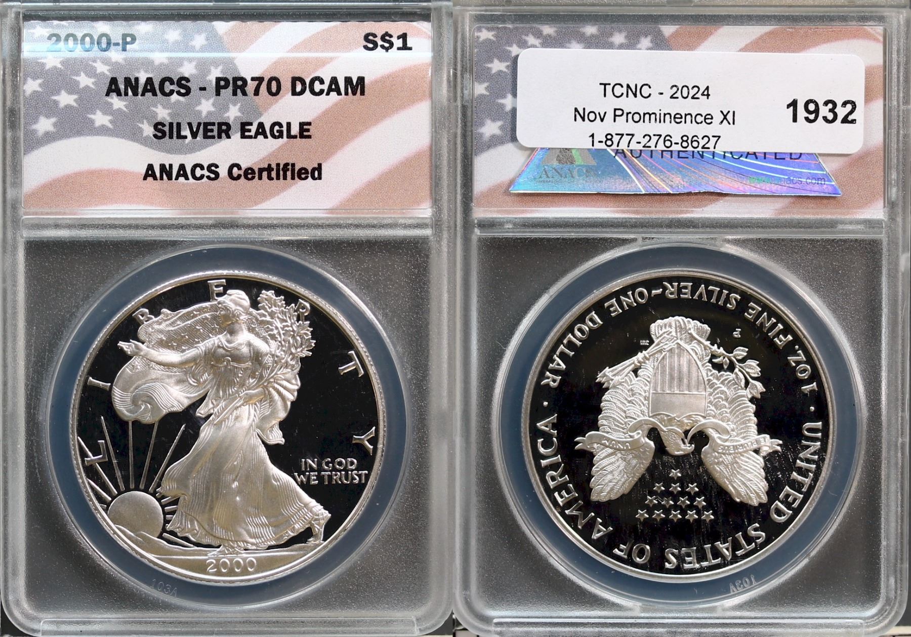 USA; 2000-P $1 ANACS Perfect PROOF-70 DCAM