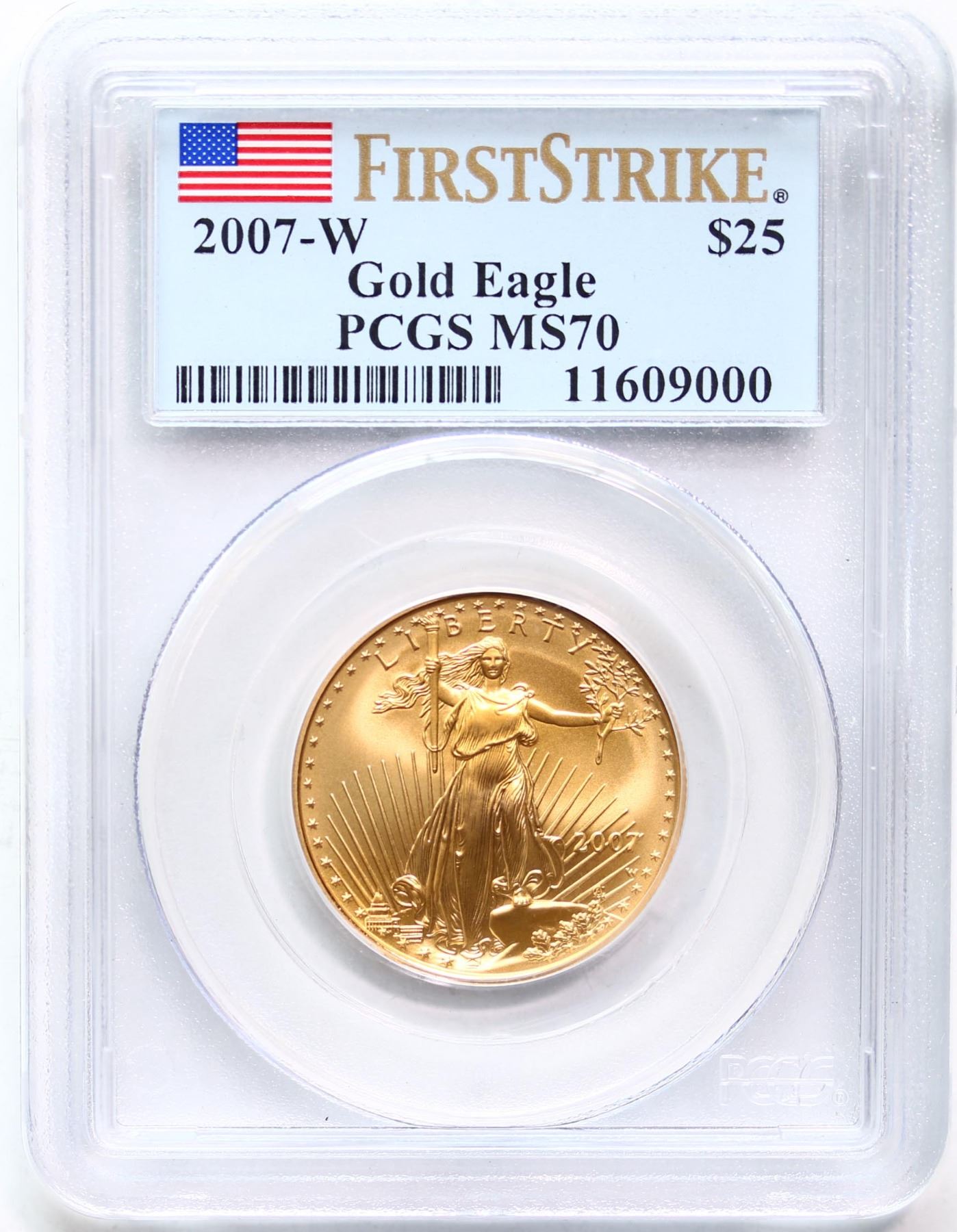 USA; 2007-W $25 "GOLD EAGLE" PCGS MS70 - PERFECT EXAMPLE - 1/2 OZ FINE GOLD