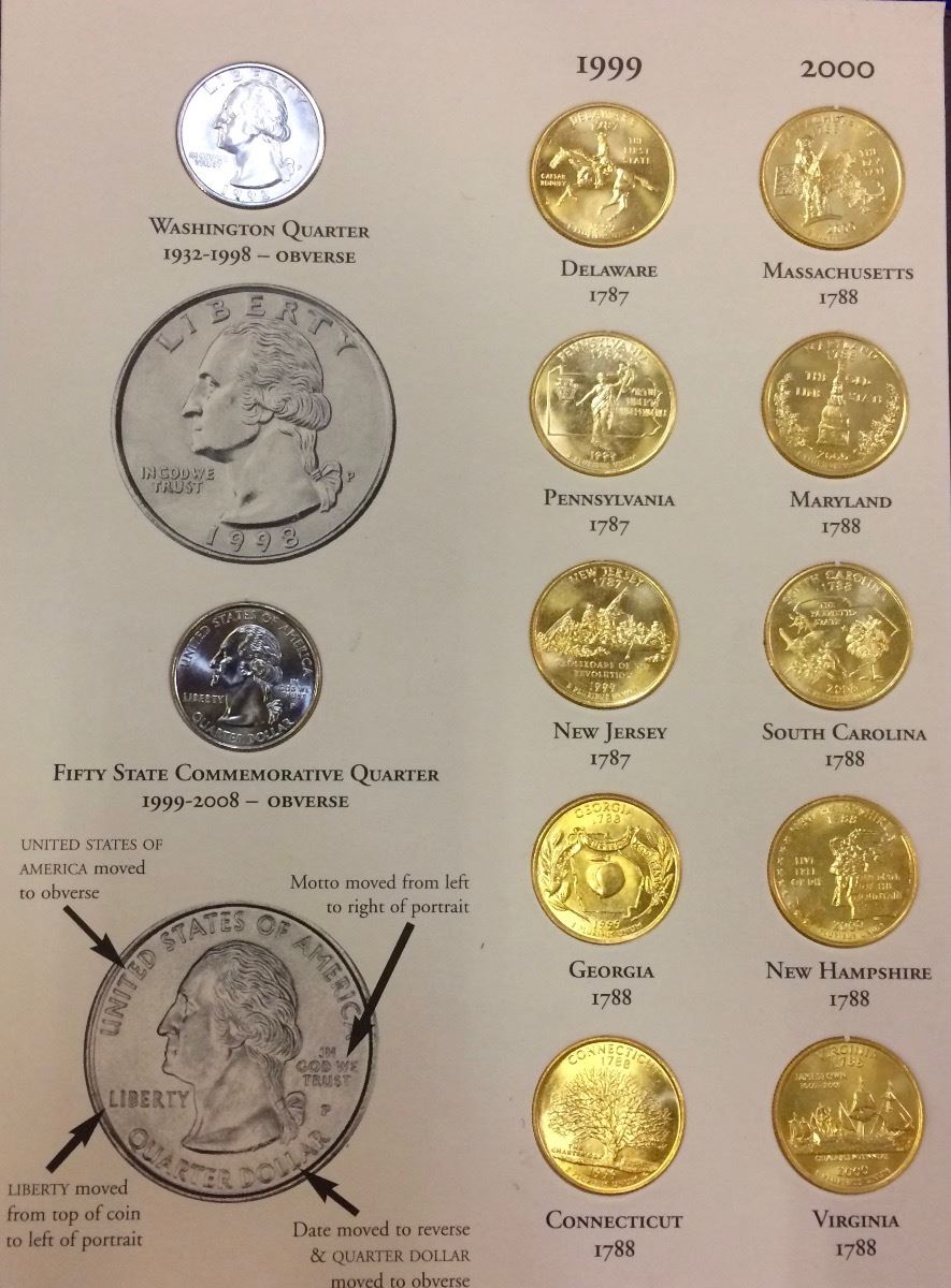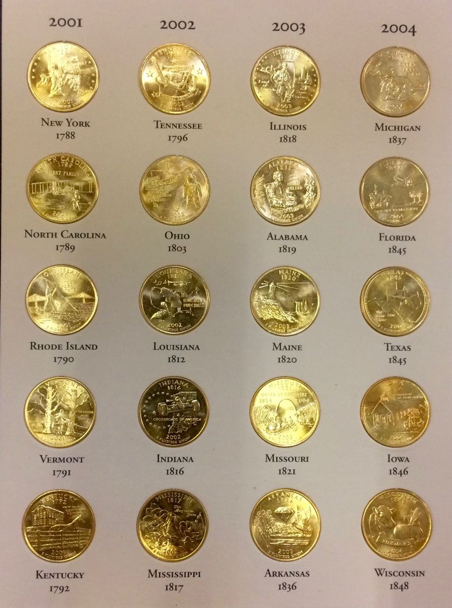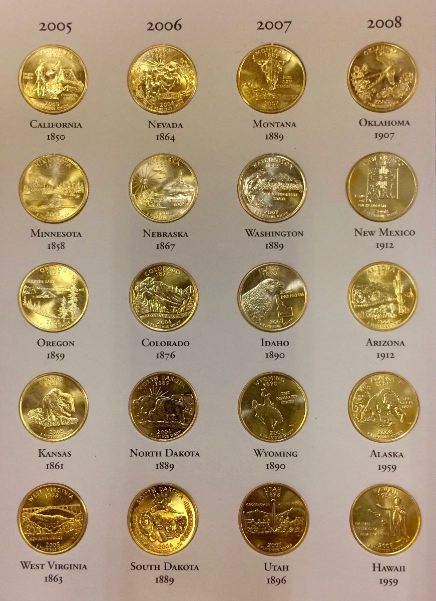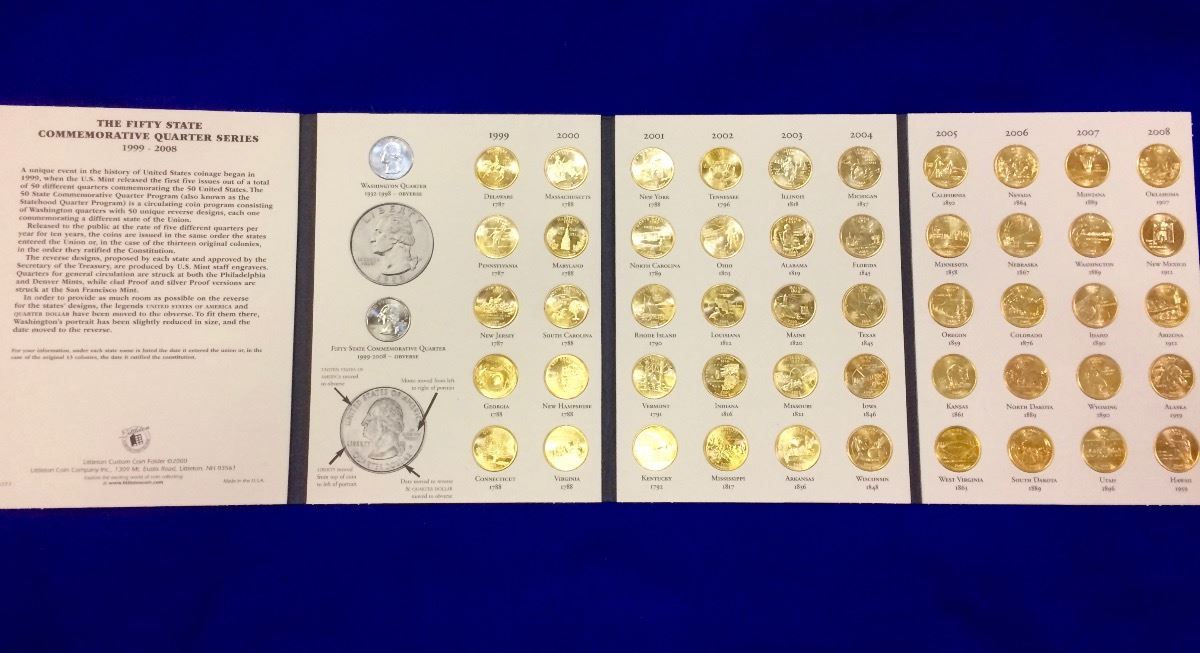 USA 25 cent Commemorative 1999-2008 Gold Plated Fifty State Quarter Serie 13$ Face Value
