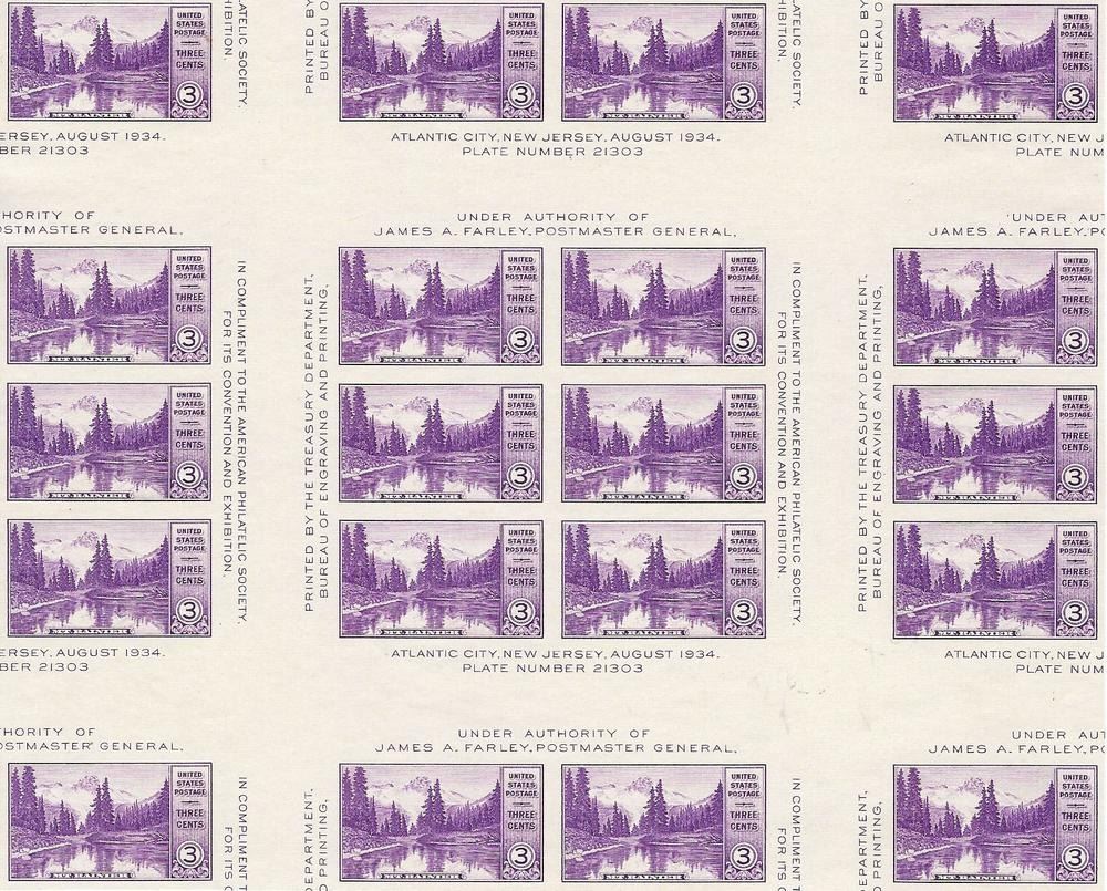 USA #770 Mount Rainer Farley Sheet. This is an unusual stamp as it has gutters which rare. Special position