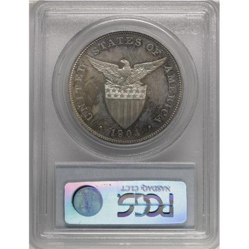 <B>USA Administration Peso Proof 1904,</B></I> KM-168, PR65 Eliasberg PCGS, marvelous watery surfaces sheathed in silvery toning mixed with delicate ginger-ale golden hues, over exceptionally bright mirrors--all testaments to complete originality. Did Mr Eliasberg personally select this coin at the mint? Of the 1,355 pieces struck, could any be finer than this specimen?<BR><I>From the Louis E. Eliasberg, Sr. Collection</B></I><BR><BR><b>Shipping:</b> Coin/Currency (<a target="_blank" href="http://www.heritageauctions.com/common/shipping.php">view shipping information</a>)