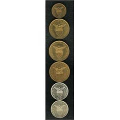 <B>USA Administration, mixed Proofs:</B></I> Half Centavo 1904, deep red toned Choice Proof, Centavo 1903, golden orange toned Choice Proof, Centavo 1904, Choice brilliant Proof, lightly toned, Centavo 1906, similar to the last, 5 Centavos 1904, brilliant Proof, and 5 Centavos 1906, lightly toned Choice Proof. Carefully preserved.<BR><I>From the Louis E. Eliasberg, Sr. Collection</B></I><BR><BR><b>Shipping:</b> Coin/Currency (<a target="_blank" href="http://www.heritageauctions.com/common/shipping.php">view shipping information</a>)