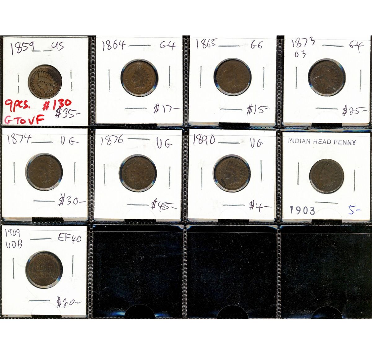 USA Cent Lot; includes 1859, 1864, 1865, 1873, 1874, 1876, 1890, 1903 & 1909VDB. Lot of 8 pcs G to