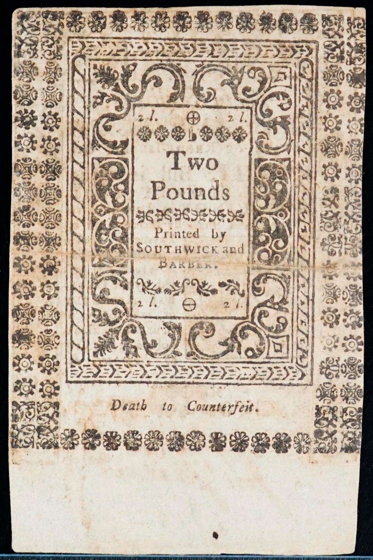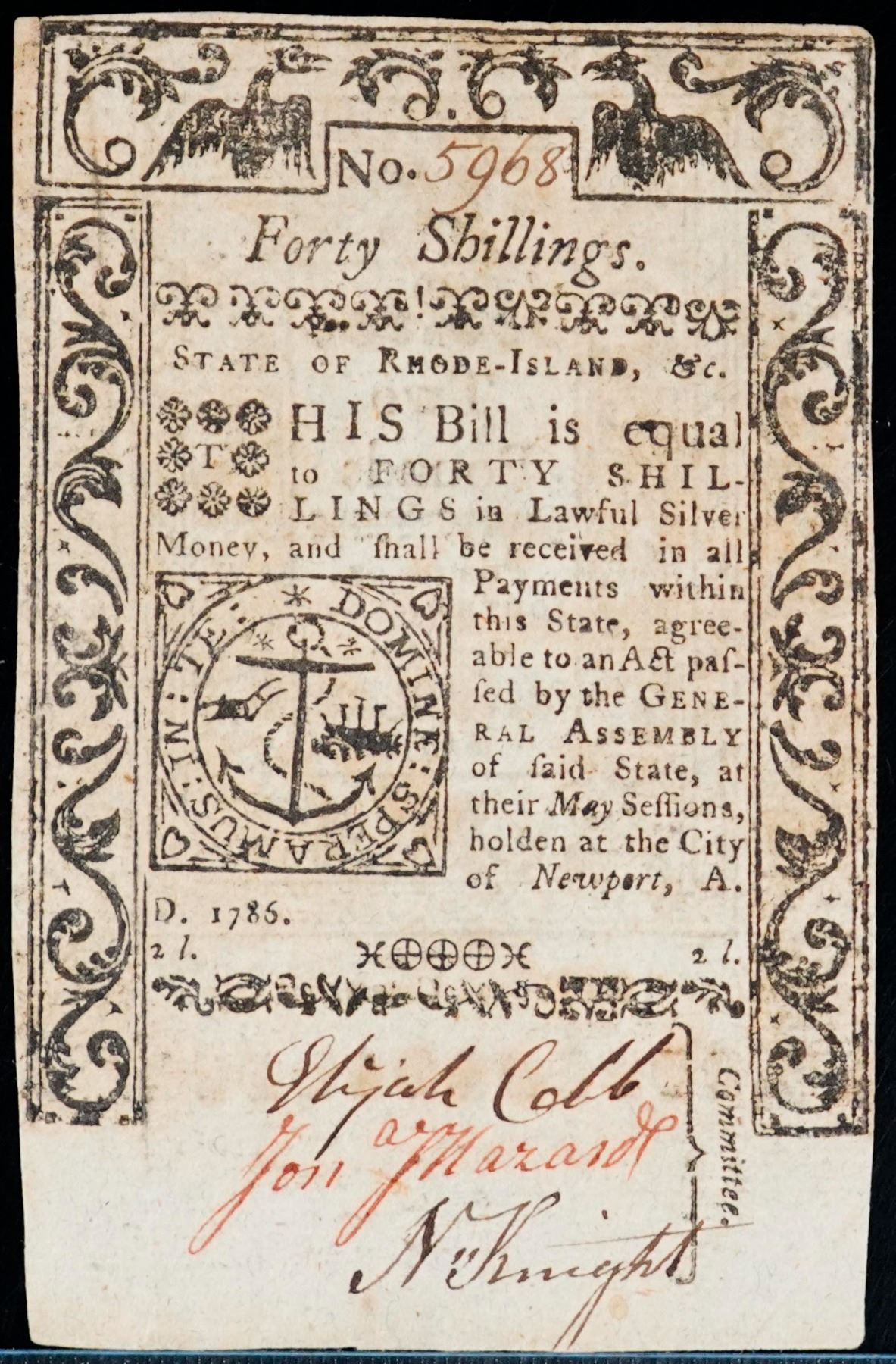 USA; Colonial Note - Rhode Island 1786 Forty Shillings (Two Pounds).