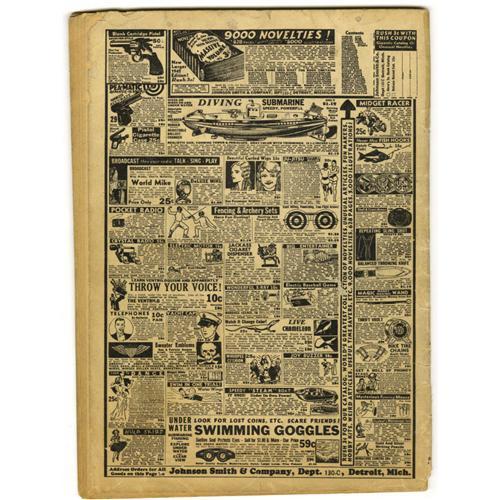 Here's a decent "reader" copy of one of the best of the early Timelys, featuring Basil Wolverton's incredible Rockman feature, plus the first appearance of the Whizzer (with art by Al Avison). Joe Simon and Jack Kirby contributed the great cover, plus the splash page for the first feature, the Defender. The back cover had become detached at some point, and has since been reattached with magic tape. Overstreet 2006 GD 2.0 value = $1,167.<BR><BR><b>Shipping:</b> Un-Slabbed Comic (<a target="_blank" href="http://www.heritageauctions.com/common/shipping.php">view shipping information</a>)