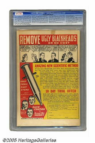 50. Auctioneer offers no opinion as to the validity of a grade assigned by any third-party grading service. Since we cannot examine C.G.A. encapsulated notes or Comics Guaranty Corporation (CGC) encapsulated comics, they are sold "as is" without our grading opinion, and may not be returned for any reason. Auctioneer shall not be liable for any patent or latent defect or controversy pertaining to or arising from any encapsulated collectible. In any such instance, purchaser's remedy, if any, shall be solely against the certification service certifying the collectible.