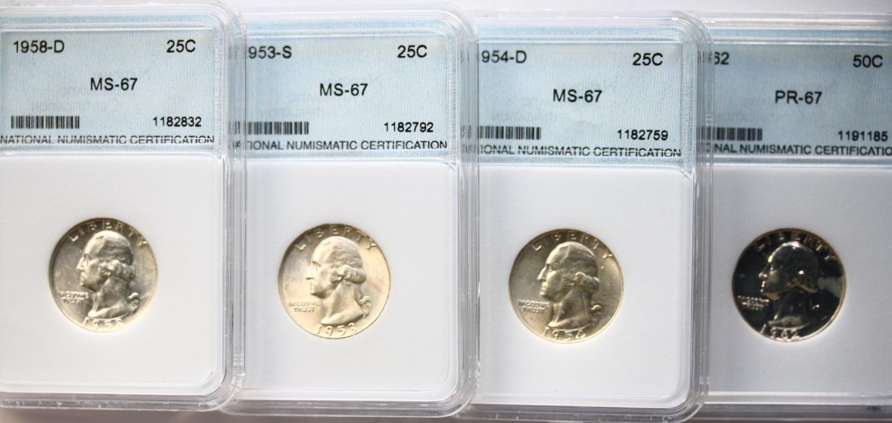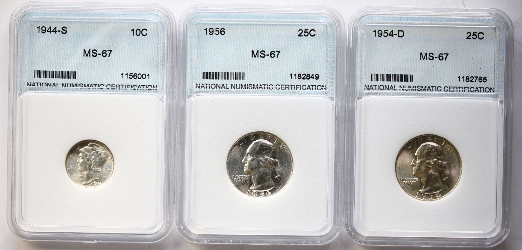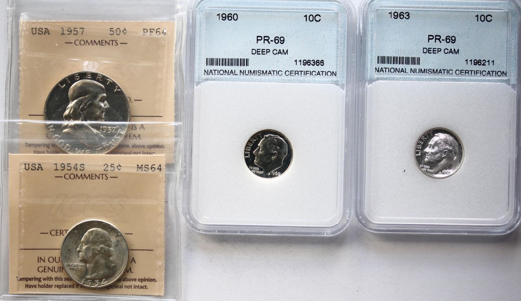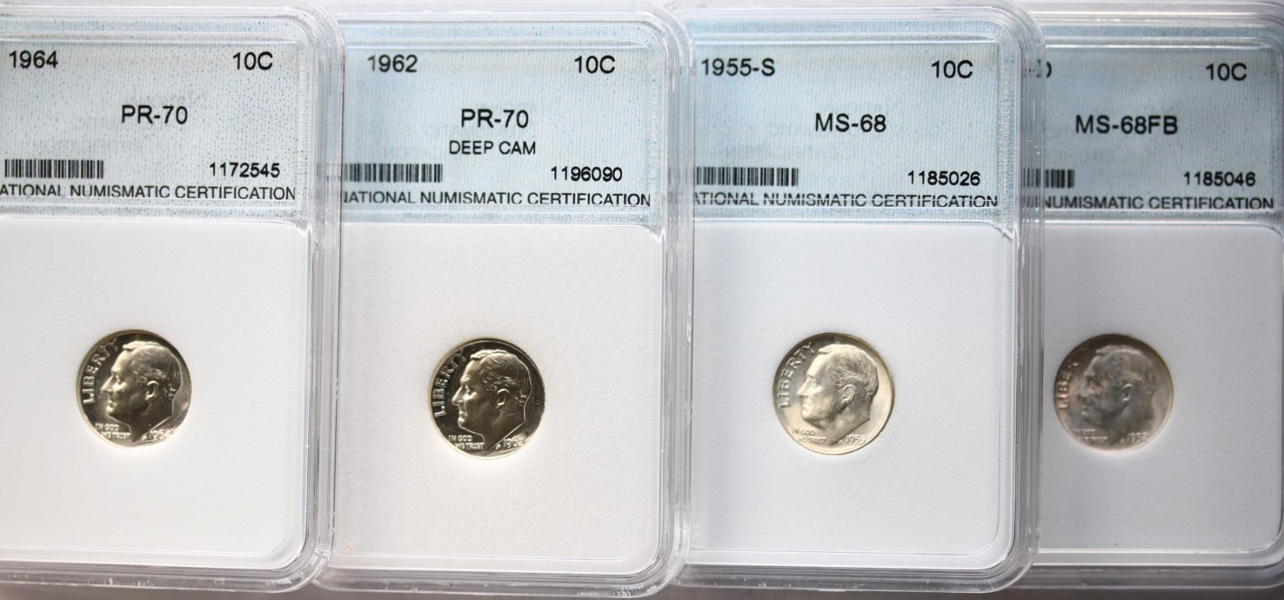 USA; Decimal Coin Lot; 1896-1964 includes different denominations and dates. Lot of 19 coins, most are certified.