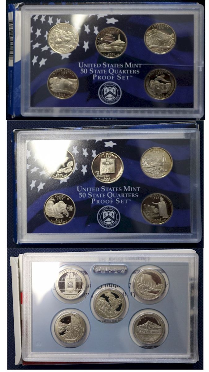 USA Estate Lot; 3x USA State Quarters proof sets. You will receive the years 2006, 2008 and 2010. Outer cardboard sleeves are a bit tattered.