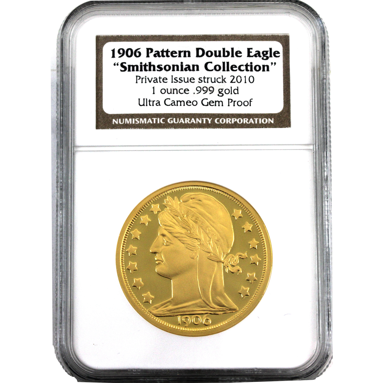 "Smithsonian Collection" Private Issue. 1oz .999 Fine Gold. Coin comes in certification holder inside a deluxe display box. Display box has some scratches. (Tax Exempt)
