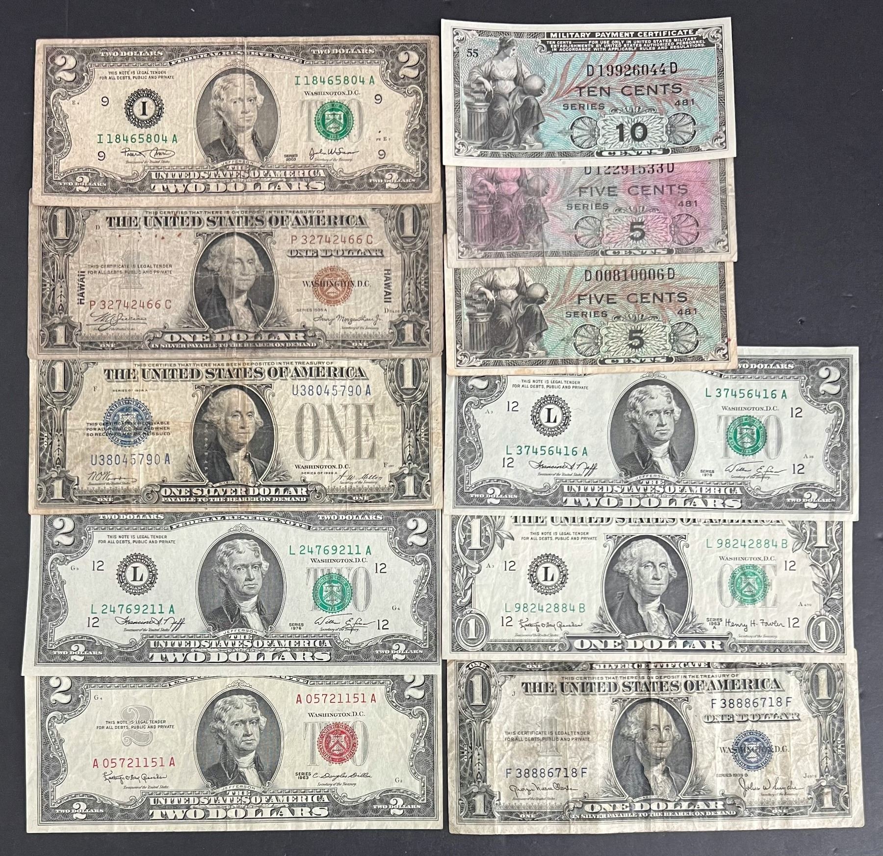 USA; Group of 11 USA notes, includes a 1935 $1 "HAWAII", Military certificates etc. Various denomin