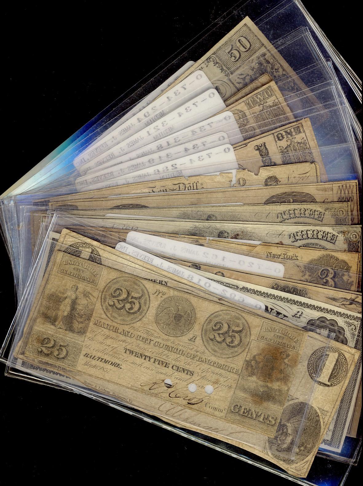 USA Large Lot of US Obsolete Notes. Lot of 15 issues including Obsoletes from North Carolina(6), New York(5), Louisiana(2), Baltimore and Virginia. A must see.