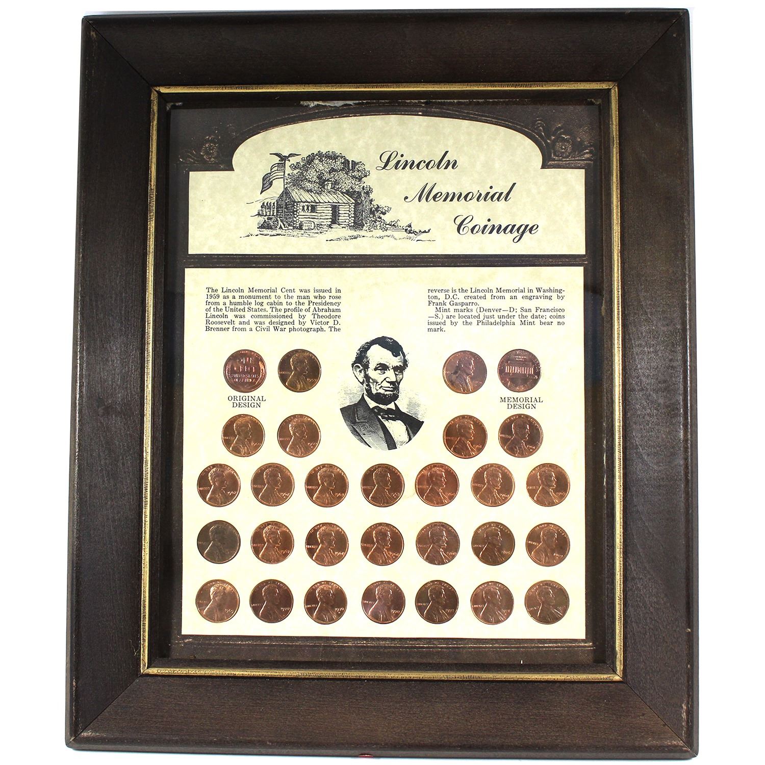 *USA Lincoln Memorial Coinage Set of 29x Pennies in Wooden Display Frame. Coins are attractive red with some deeper cherry tones