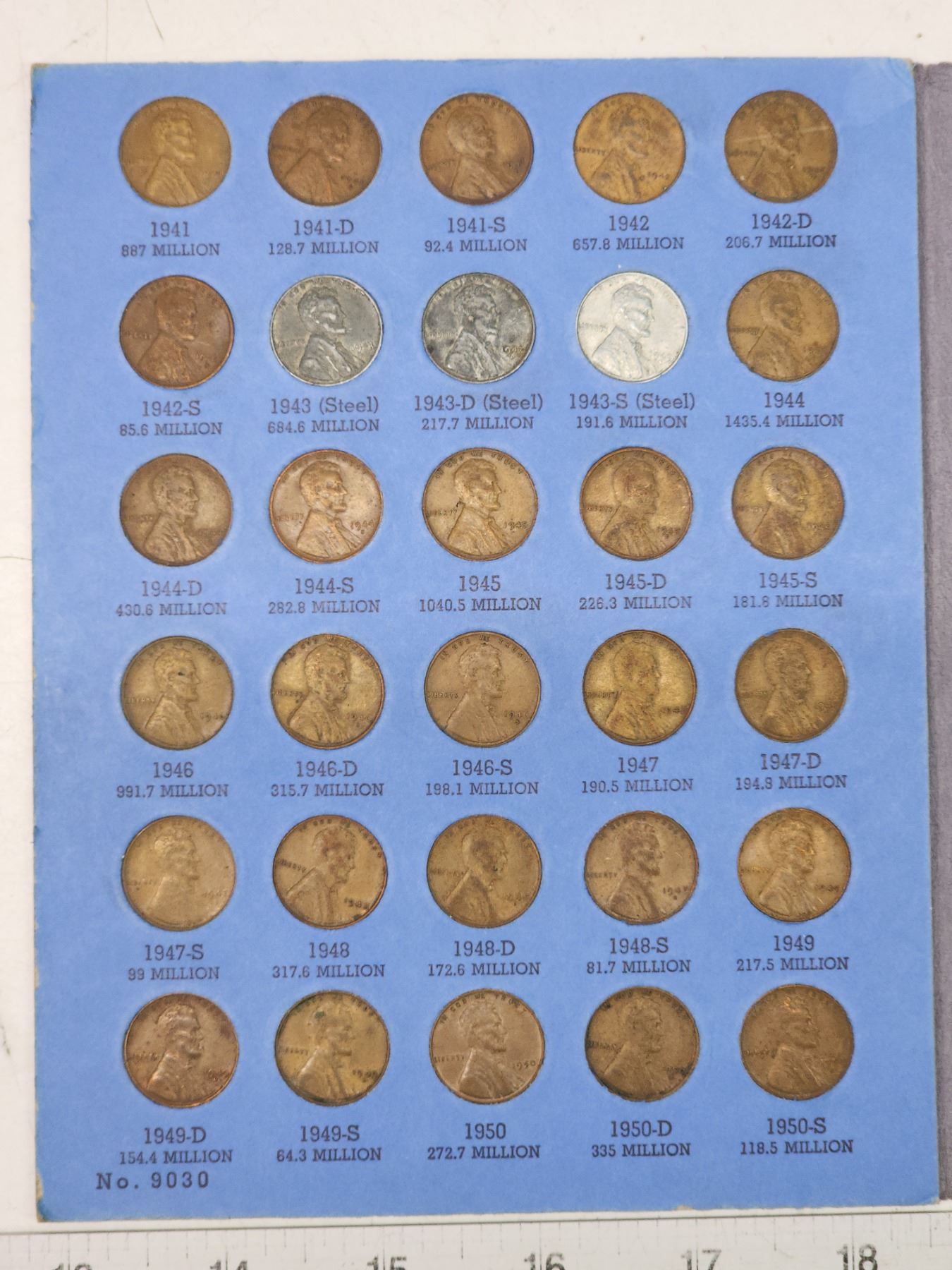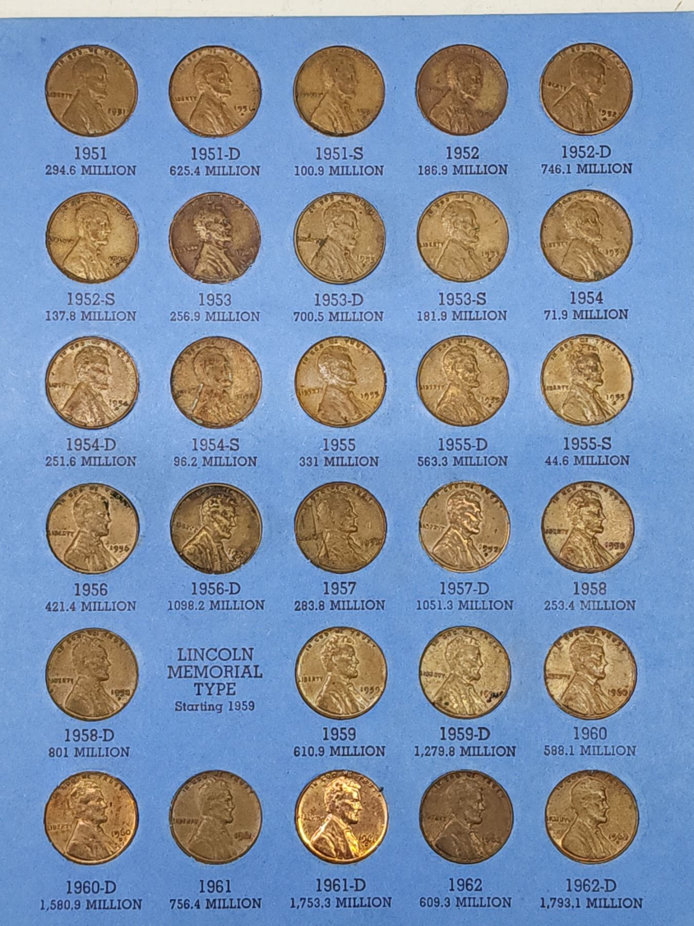 USA Lincoln head small cent collection, in blue Whitman folder - 1941 to date - missing 1 coin