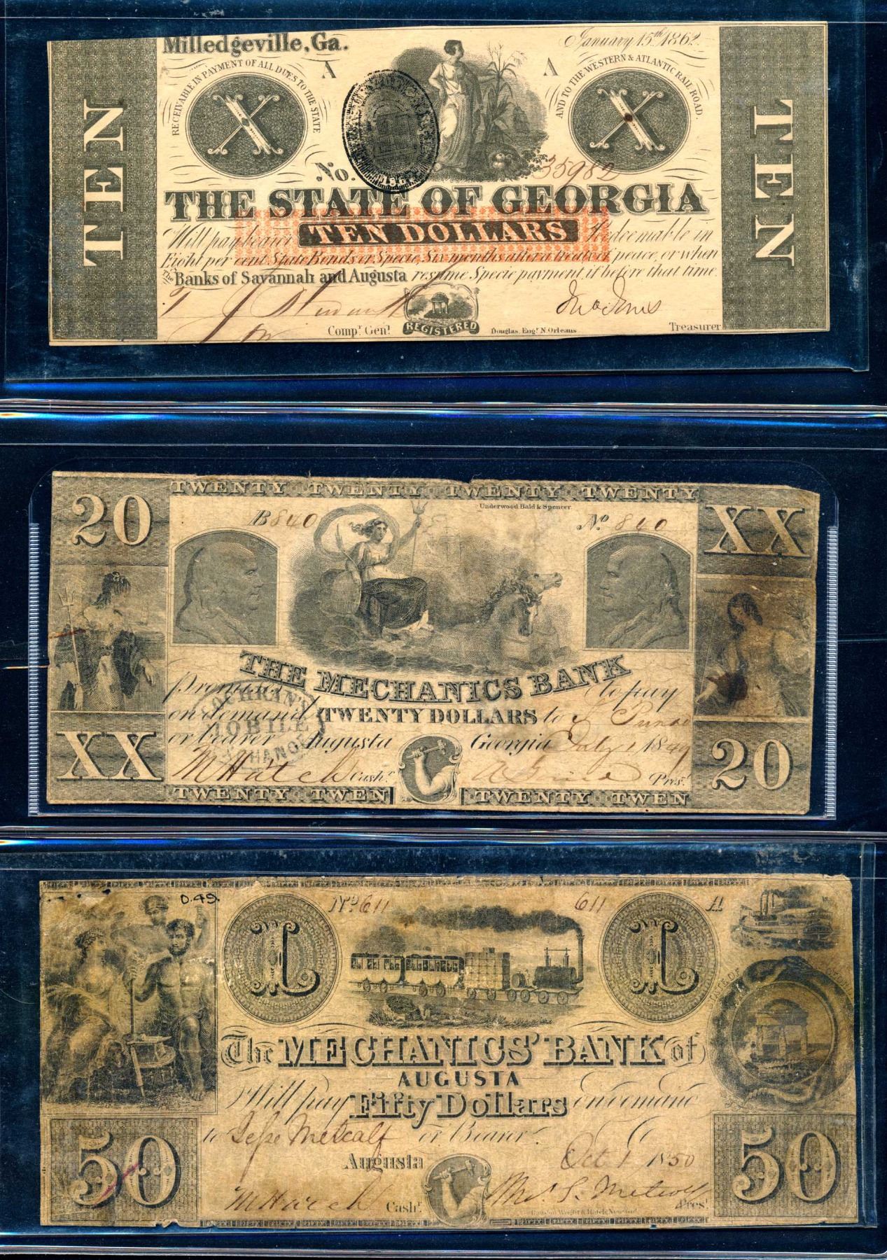 Included : $10 The State of Georgia 1862, $50 The Mechanics Bank 1850, $20 The Mechanics Bank 1849