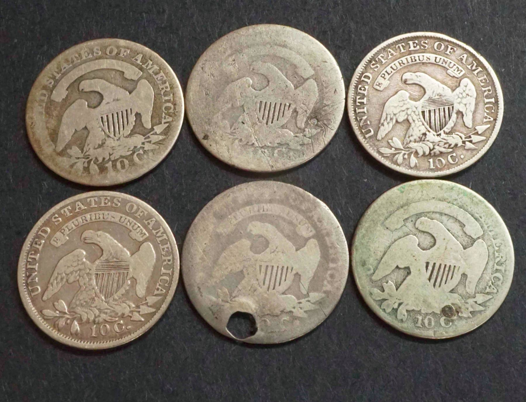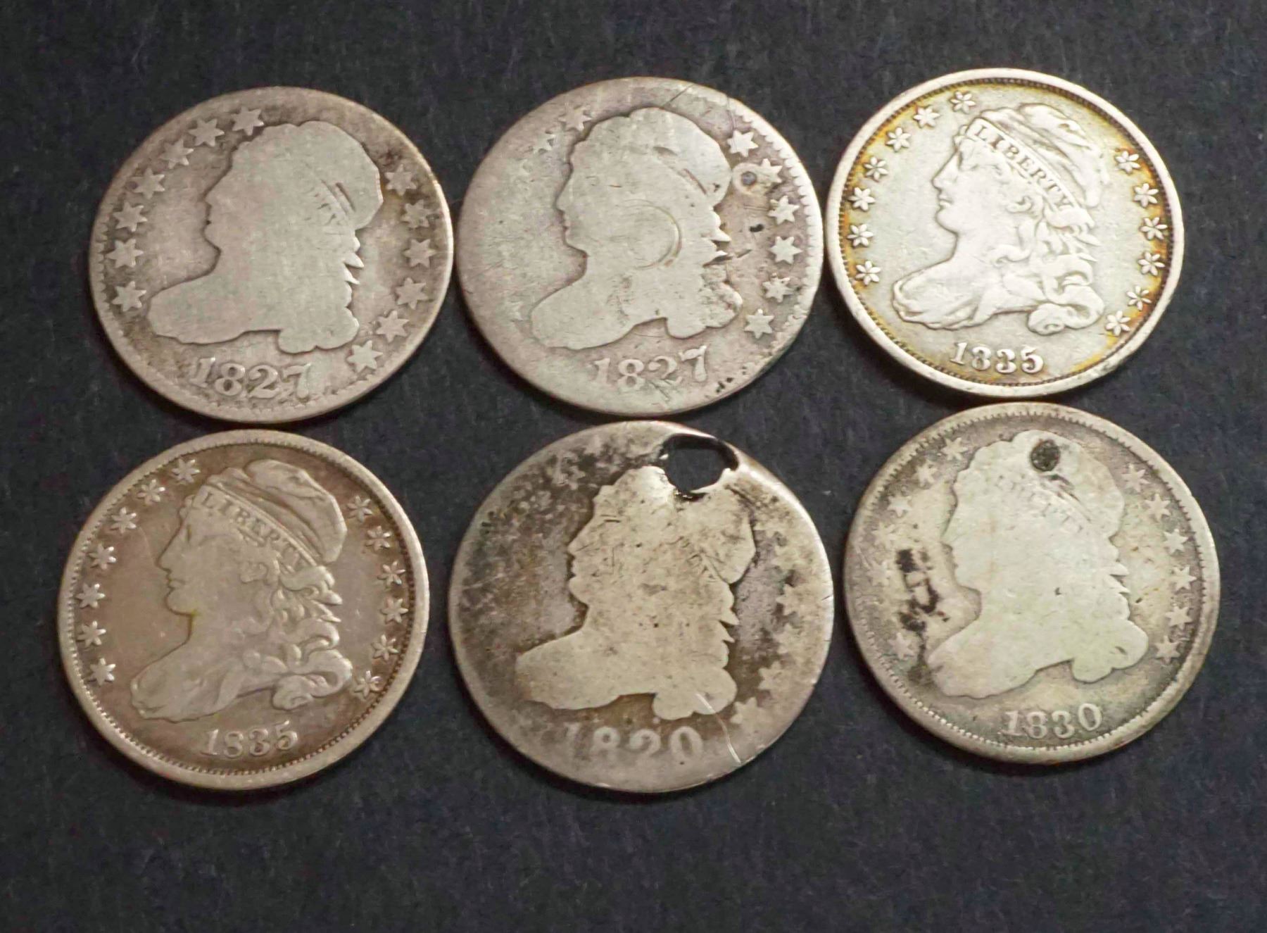 1820,- Poor, holed; 1830 - G, holed; 2 x 1827 - AG and G; 2 x 1835 - F and VF. ,